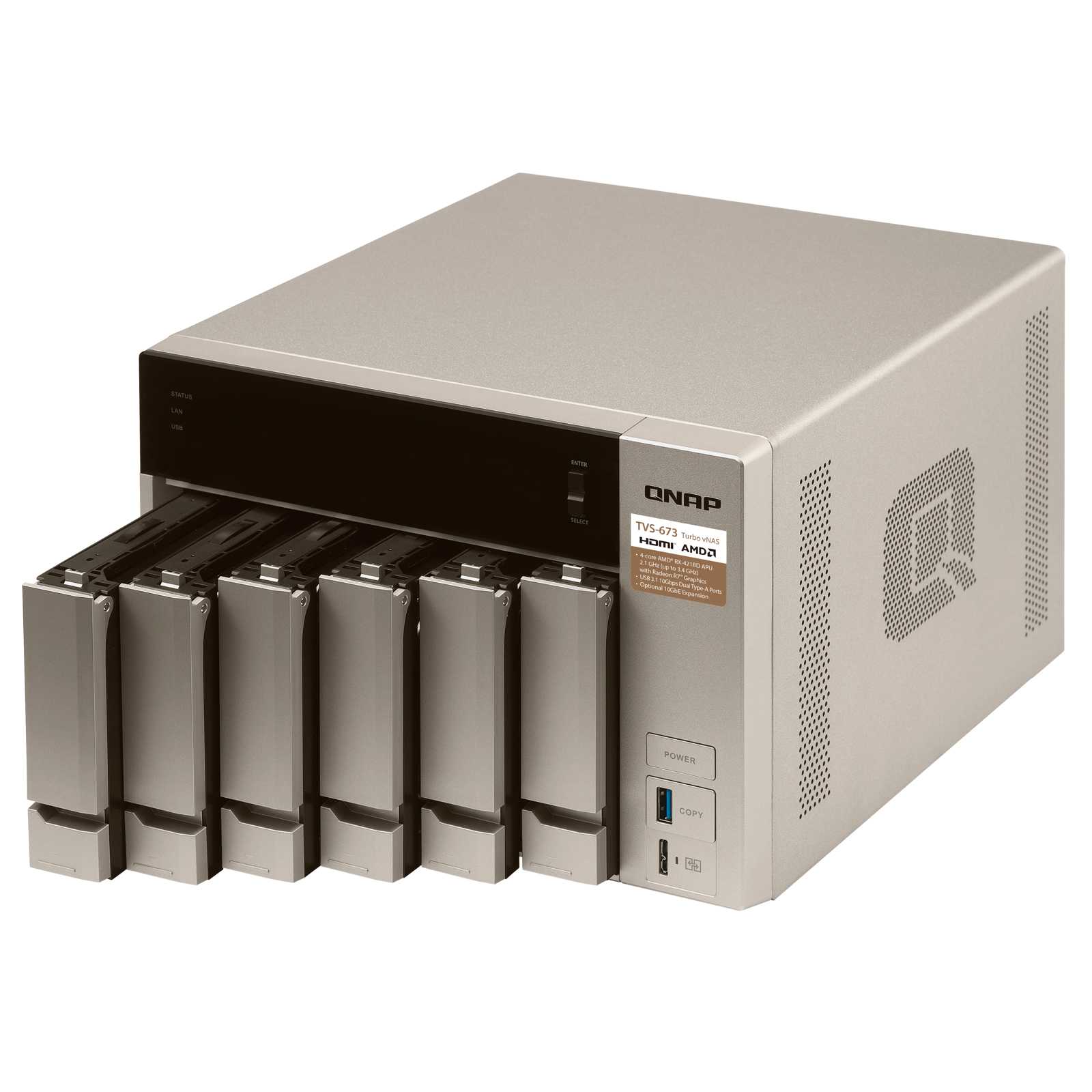 - Solución de almacenamiento unificado NAS e iSCSI-SAN (IP-SAN) - GPU Radeon? R7 integrada para almacenamiento y reproducción de video 4K - Capacidad de ampliación a 10GbE, solución de almacenamiento altamente eficiente para la virtualización y la edición e intercambio de video en HD - Puerto USB QuickAccess para accede a los archivos sin necesidad de una conexión de red - Caché SSD M.2 y tecnología Qtier que de manera conjunta llevan a cabo una eficiencia de almacenamiento optimizada - Admite virtualización, almacenamiento centralizado, backup, intercambio, y recuperación ante desastres - QmailAgent para la gestión centralizada de correo, Qsirch, una herramienta de búsqueda de texto completo; Qcontactz para almacenar y gestionar los contactos de forma centralizada. - Usa el NAS como un PC con la exclusiva tecnología QvPC y la visualización 4K - El nuevo sistema de video-vigilancia QVR Pro permite espacio dedicado al almacenamiento para los datos de video-vigilancia en el NAS, y aprovecha las ventajas de la capacidad de gestión de almacenamiento desde el QTS. - Construya un sistema de karaoke personal con una salida de audio de alta calidad utilizando la aplicación OceanKTV.