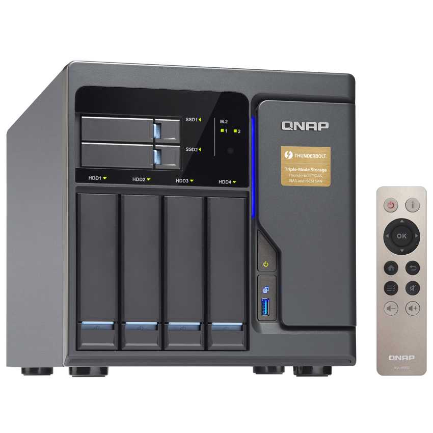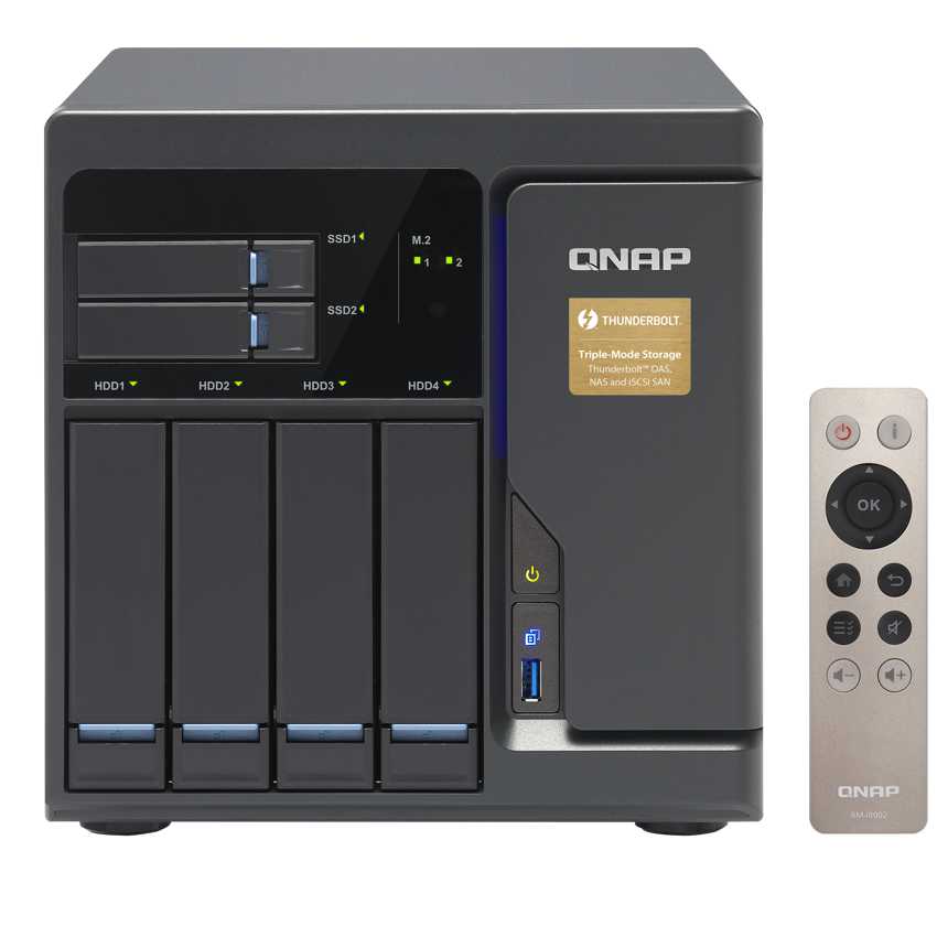 Descripción QNAP TVS-682T. Capacidad total de almacenamiento instalada: 0 GB, Tipos de unidades de almacenamiento admitidas: Unidad de disco duro, SSD, Interfaz de unidad de almacenamiento: Serial ATA II, Serial ATA III. Familia de procesador: Intel Core i3, Modelo del procesador: i3-6100, Frecuencia del procesador: 3,7 GHz. RAM interna: 8 GB, Tipo de memoria RAM interna: DDR4, RAM máximo soportado: 64 GB. Ethernet LAN, velocidad de transferencia de datos: 10,100,1000,10000 Mbit/s, Protocolos de red compatibles: CIFS/SMB, AFP (v3.3), NFS(v3), FTP, FTPS, SFTP, TFTP, HTTP(S), Telnet, SSH, iSCSI, SNMP, SMTP, and S. Tipo de chasis: Torre, Tipo de enfriamiento: Activo, Color del producto: Negro