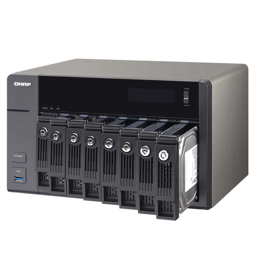 Especificaciones Unidades de almacenamiento instaladas: No Tipo de unidades de almacenamiento instaladas: HDD+SSD Tipos de unidades de almacenamiento admitidas: Unidad de disco duro, SSD Número de unidades de almacenamiento compatibles: 8 Capacidad máxima de almacenamiento admitida: 64 TB Interfaz de unidad de almacenamiento: Serial ATA III Tamaño de la unidad de almacenamiento: 2.5/3.5" Compatibilidad con RAID: Si Niveles RAID: 0, 1, 5, 6, 10 Receptáculos de unidades hot-swap: Si Familia de procesador: Intel Core i3 Modelo del procesador: i3-4150 Frecuencia del procesador: 3,5 GHz Número de núcleos de procesador: 2 De caché L3: 3 MB RAM interna: 4 GB Tipo de memoria RAM interna: DDR3 RAM máximo soportado: 16 GB Ranuras de memoria: 2 Memoria Flash: 512 MB Ethernet: Si Ethernet LAN, velocidad de transferencia de datos: 1000 Mbit/s Wifi: No DHCP, cliente: Si DHCP, servidor: Si Jumbo Frames, soporte: Si Soporte iSCSI: Si Conexión de redes: Si Protocolos de red compatibles: CIFS/SMB, AFP (v3.3), NFS(v3), FTP, FTPS, SFTP, TFTP, HTTP(S), Telnet, SSH, iSCSI, SNMP, SMTP, SMSC Ethernet LAN (RJ-45) cantidad de puertos: 4 Puerto USB: Si Cantidad de puertos USB 2.0: 2 Cantidad de puertos tipo A USB 3.0 (3.1 Gen 1): 3 Número de puertos HDMI: 1 Tipo de chasis: Torre Tipo de enfriamiento: Activo Color del producto: Negro Número de ventiladores: 2 Diámetro de ventilador: 12 cm Indicadores LED: LAN, Estado, USB Pantalla incorporada: Si Tipo de visualizador: LCD Tipo: NAS Clase del dispositivo: Small & Medium Business Función de copia de seguridad: Si Opciones de copia de seguridad: Cloud, iSCSI LUN Vibrador: Si Soporte multilinguaje: Si Nivel de ruido: 23,1 dB Sistema operativo instalado: QNAP Turbo System Versión de sistema operativo: 4.1 Algoritmos de seguridad soportados: 256-bit AES, FIPS 140-2, HTTPS, SSH Lista de Control de Acceso (ACL): Si Administación basada en web: Si Botón de restaurar: Si Sistema operativo Windows soportado: Si Sistema operativo Linux soportado: Si Sistema operativo MAC soportado: Si Ubicación de fuente de alimentación: Integrado Capacidad de la fuente de alimentación (PSU): 350 W Número de fuentes de alimentación: 1 Voltaje de entrada AC: 100-240 V Frecuencia de entrada AC: 50/60 Hz Ancho: 29,8 cm Profundidad: 23,5 cm Altura: 18,5 cm Peso: 7,83 kg Cables incluidos: Corriente alterna, LAN (RJ-45) Intervalo de temperatura operativa: 0 - 40 °C Intervalo de humedad relativa para funcionamiento: 5 - 95%