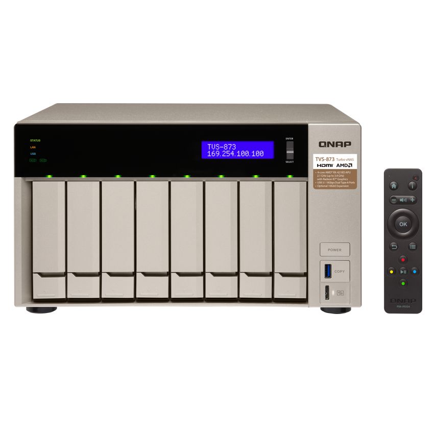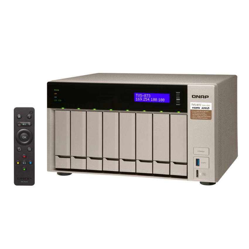 - Solución de almacenamiento unificado NAS e iSCSI-SAN (IP-SAN) - GPU Radeon? R7 integrada para almacenamiento y reproducción de video 4K - Capacidad de ampliación a 10GbE, solución de almacenamiento altamente eficiente para la virtualización y la edición e intercambio de video en HD - Puerto USB QuickAccess para accede a los archivos sin necesidad de una conexión de red - Caché SSD M.2 y tecnología Qtier que de manera conjunta llevan a cabo una eficiencia de almacenamiento optimizada - Admite virtualización, almacenamiento centralizado, backup, intercambio, y recuperación ante desastres - QmailAgent para la gestión centralizada de correo, Qsirch, una herramienta de búsqueda de texto completo; Qcontactz para almacenar y gestionar los contactos de forma centralizada. - Usa el NAS como un PC con la exclusiva tecnología QvPC y la visualización 4K - El nuevo sistema de video-vigilancia QVR Pro permite espacio dedicado al almacenamiento para los datos de video-vigilancia en el NAS, y aprovecha las ventajas de la capacidad de gestión de almacenamiento desde el QTS. - Construya un sistema de karaoke personal con una salida de audio de alta calidad utilizando la aplicación OceanKTV.