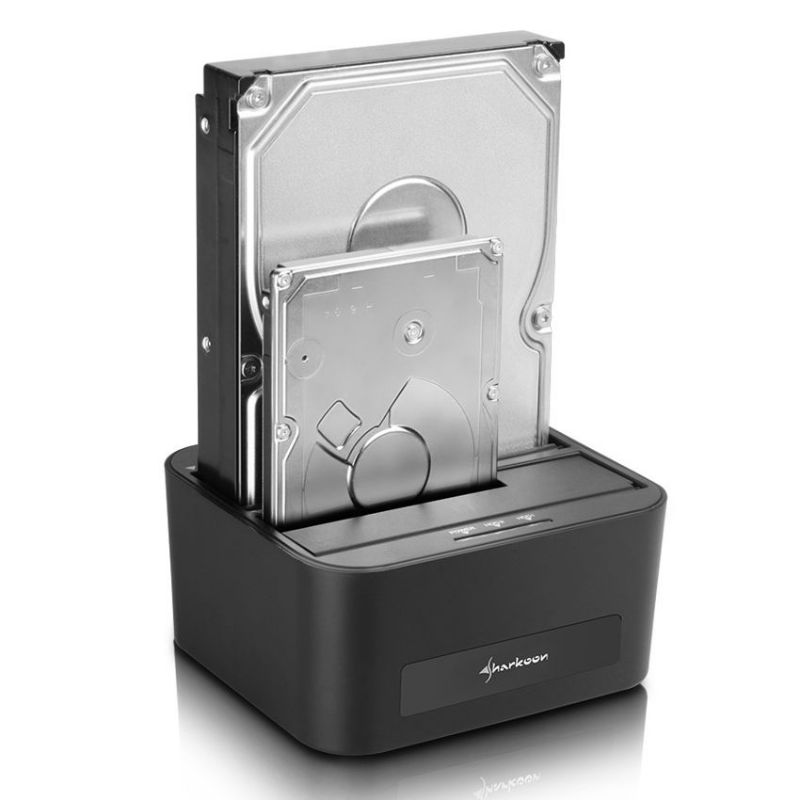 Descripción Sharkoon QuickPort XT Duo Clone. Tipo de almacenamiento: Unidad de disco duro, Interfaz de unidad de almacenamiento: SATA, Tamaños de almacenamiento en disco soportados: 2.5,3.5". Color del producto: Negro, Indicadores LED: Unidad de disco duro, Poder. Sistema operativo Windows soportado: Windows 7 Enterprise,Windows 7 Enterprise x64,Windows 7 Home Basic,Windows 7 Home Basic.... Cables incluidos: USB. Interfaz estándar: USB 3.2 Gen 1 (3.1 Gen 1)