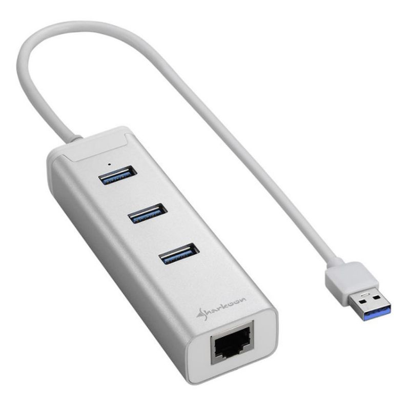Descripción Sharkoon 3x USB 3.0 + 1x RJ45. Interfaces de concentradores: USB 3.2 Gen 1 (3.1 Gen 1) Type-A. Velocidad de transferencia de datos: 5000 Mbit/s, Color del producto: Plata, Longitud de cable: 0,3 m. Sistema operativo Windows soportado: Windows 7 Enterprise,Windows 7 Enterprise x64,Windows 7 Home Basic,Windows 7 Home Basic.... Ancho: 110 mm, Profundidad: 35 mm, Altura: 23 mm. Ancho del paquete: 178 mm, Profundidad del paquete: 108 mm, Altura del paquete: 28 mm