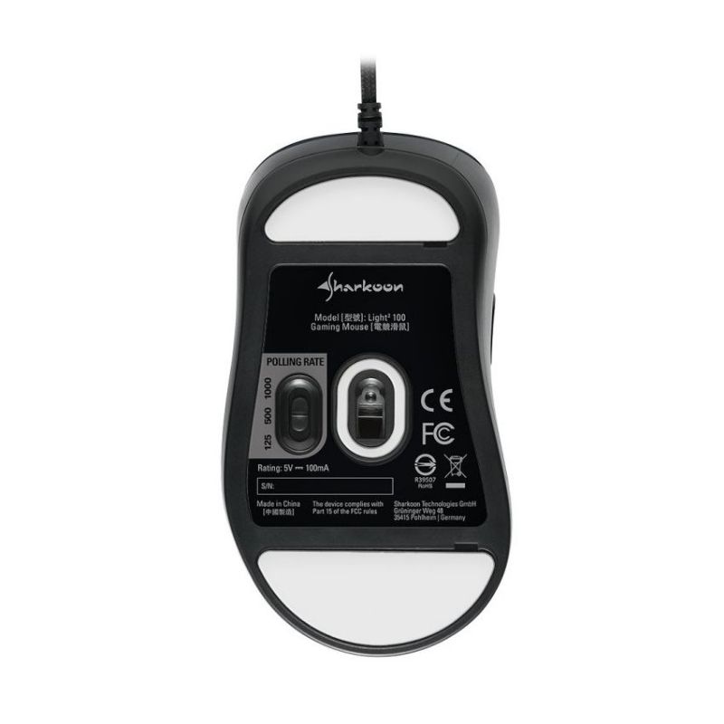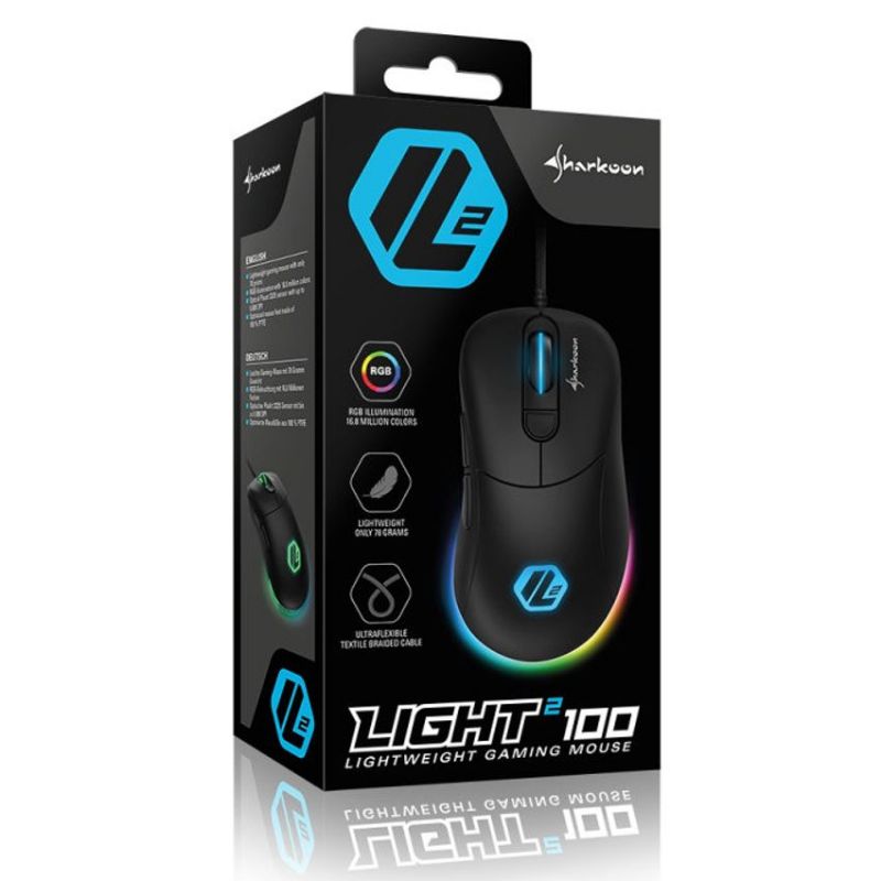 Descripción Sharkoon Light² 100. Factor de forma: mano derecha. Tecnología de detección de movimientos: Óptico, Interfaz del dispositivo: USB tipo A, Resolución de movimiento: 5000 DPI, Tipo de botones: Botones presionados, Cantidad de botones: 6, Tipo de desplazamiento: Rueda, Aceleración (máx.): 20 G. Fuente de energía: Cable. Color del producto: Negro