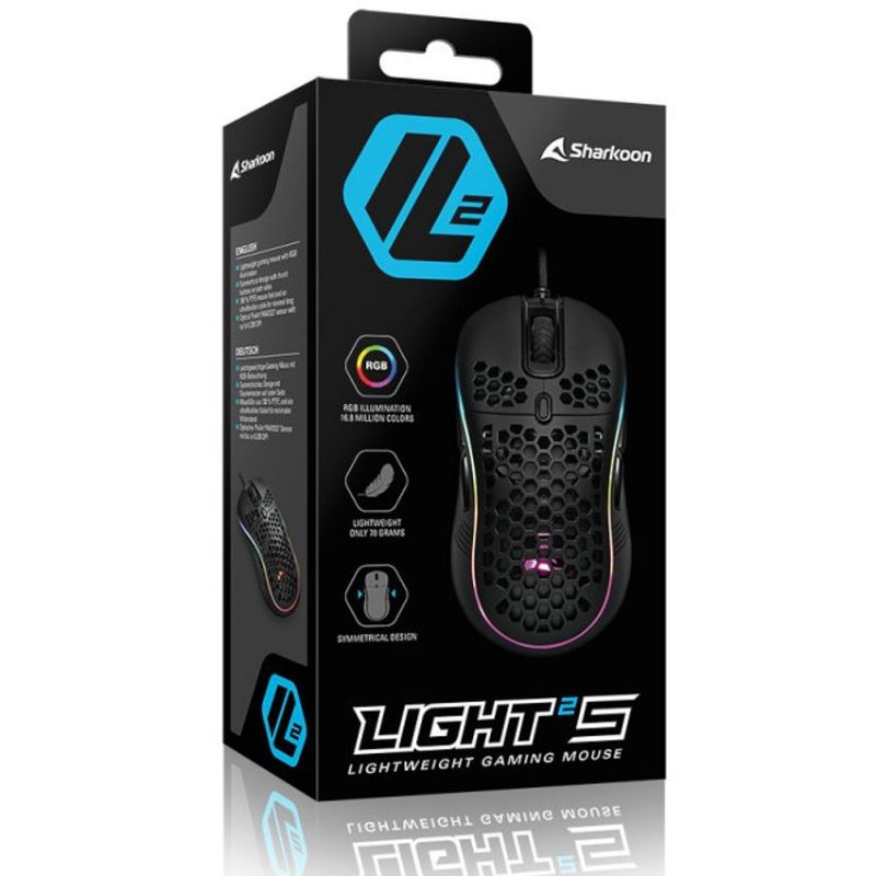 Descripción Sharkoon Light² S. Factor de forma: Ambidextro. Tecnología de detección de movimientos: Óptico, Interfaz del dispositivo: USB tipo A, Resolución de movimiento: 6200 DPI, Tipo de botones: Botones presionados, Cantidad de botones: 8, Tipo de desplazamiento: Rueda, Aceleración (máx.): 30 G. Iluminación de color: Rojo/Verde/Azul. Fuente de energía: Cable. Color del producto: Negro
