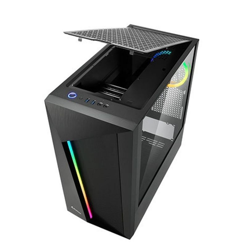 Especificaciones Puertos e Interfaces Cantidad de puertos tipo A USB 3.2 Gen 1 (3.1 Gen 1) 2 Entrada de audio Si Salida de audio Si Peso y dimensiones Altura 444 mm Ancho 215 mm Peso 5,8 kg Profundidad 452 mm Enfriamiento Diámetro de ventiladores frontales soportados 120,140 mm Diámetro de ventiladores traseros soportados 120 mm Número de ventiladores frontales soportados (max.) 2 Número de ventiladores posteriores soportados 1 Ventiladores frontales instalados 1x 120 mm Ventiladores traseros instalados 1x 120 mm Fuente de alimentación Factores de forma de la fuente de alimentación compatibles ATX,Mini ITX,microATX Fuente de alimentación incluida No Número de fuentes de alimentación 1 Ubicación de fuente de alimentación Parte trasera Medios de almacenaje Hot-swap Si Tamaños de disco duro soportados 2.5,3.5" Diseño Número de bahías 2.5'' 2 Número de bahías internas de 3,5 " 3 Número de puertos 3.5" 3 Adecuado para Juego Altavoces incorporados No Altura máxima de la CPU más fresco 16,7 cm Botón de restaurar Si Botón de encendido/apagado Si Color del producto Negro Factor de forma Midi Tower Formas de factor de tarjeta madre soportadas ATX,Micro ATX,Mini-ITX Gestión de cables Si Iluminación Si Iluminación de color Rojo/Verde/Azul Iluminación ubicación Ventiladores de la caja, Frente, Interno Indicadores LED Poder Material Aluminio, Vidrio templado Máxima longitud de la tarjeta de gráficos 31,5 cm Máxima longitud de PSU 20 cm Número de ranuras de expansión 7 Panel(es) de vidrio templado Si Tipo PC Ventana lateral Si