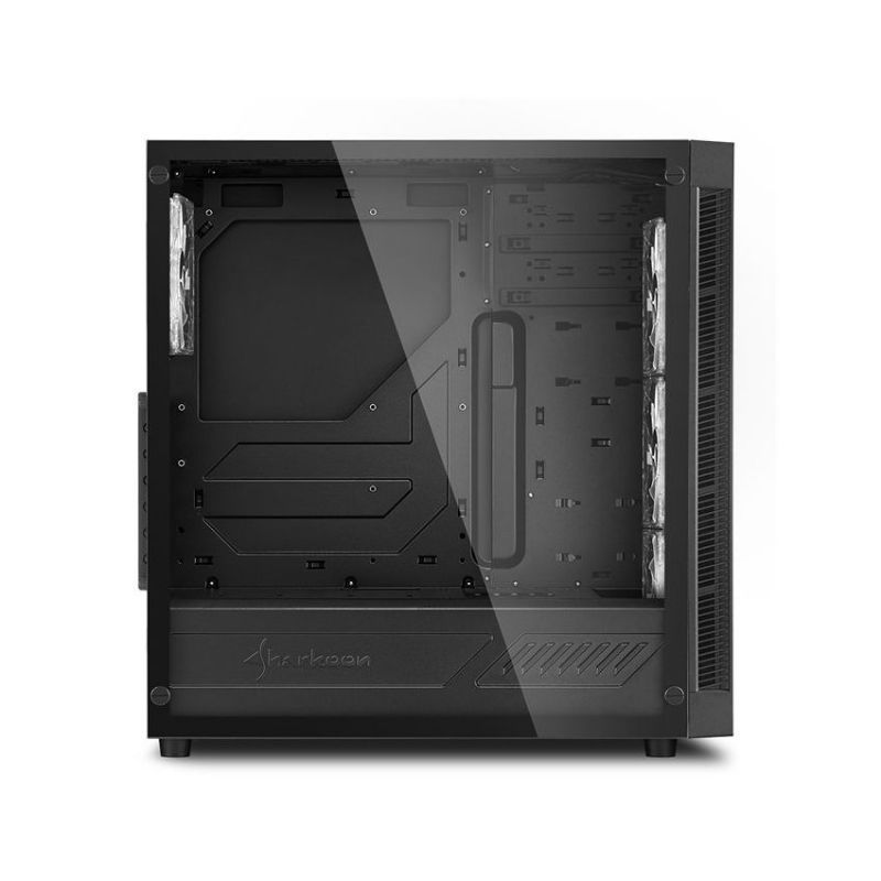 Descripción Sharkoon TG5 – La caja para los entusiastas de Hardware Sharkoon TG5 es la caja ATX Midi perfecta para todos los entusiastas del hardware que quieren mostrar lo que tienen entre manos. Gracias a los paneles laterales y frontal fabricados en vidrio templado, todo el mundo querrá ver el equipo montado en esta caja. Dependiendo de la versión de la caja, en el frente tres ventiladores LED preinstalados de 120 mm así como un ventilador LED de 120 mm también preinstalado en la parte posterior aseguran una iluminación que va a medida con el hardware integrado en rojo, verde, azul o blanco. Así que nada te va a distraer de lo esencial, hemos construido la caja con multitud de opciones para ocultar la fuente de alimentación, los cables y los discos duros.