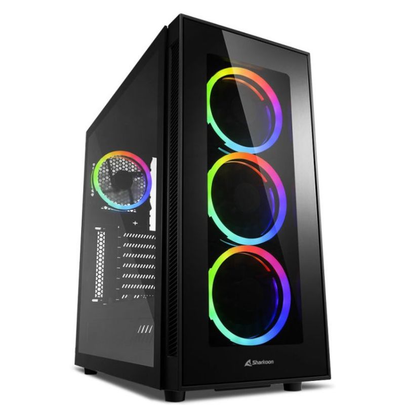 Descripción Sharkoon TG5 RGB Silent PCGH Edition. Factor de forma: Tower, Tipo: PC, Material: Vidrio templado. Ventiladores frontales instalados: 3x 120 mm, Diámetro de ventiladores frontales soportados: 120 mm, Ventiladores traseros instalados: 1x 120 mm. Tamaños de disco duro soportados: 2.5,3.5". Ancho: 215 mm, Profundidad: 452 mm, Altura: 465 mm