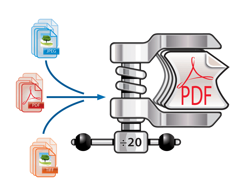 Reduzca el tamaño de sus archivos PDF y de imagen Convierta archivos PDF y de imagen estándar en documentos PDF hasta 20 veces más pequeños.