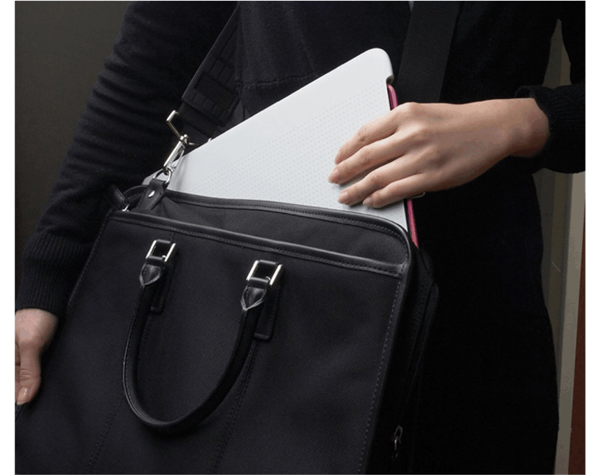 Lo puede guardar fácilmente en cualquier bolsa o funda para portátiles (15,6 pulgadas o más): tiene un grosor de sólo 12 mm.