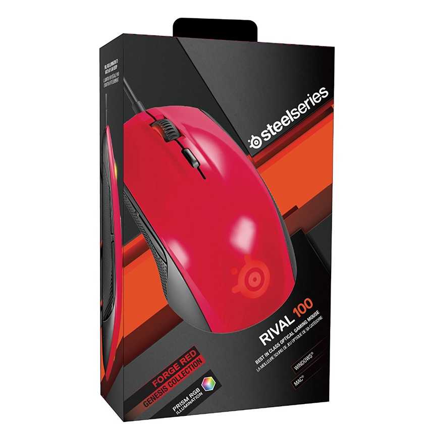 Descripción Steelseries Rival 100. Interfaz del dispositivo: USB, Utilizar con: Juego, Tipo de botones: Pressed buttons. Color del producto: Negro, Rojo, Factor de forma: mano derecha, Coloración de superficie: Monótono. Longitud de cable: 1,8 m. Fuente de energía: Cable. Ancho: 67,1 mm, Profundidad: 120,6 mm, Peso del ratón: 120 g