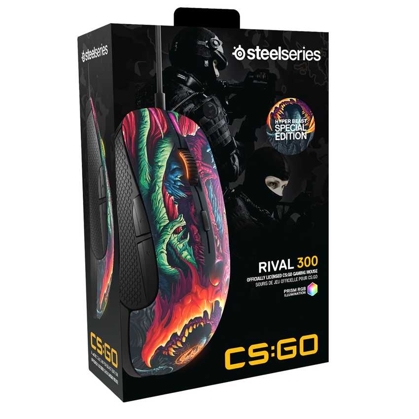 Rival 300 CS:GO con un diseño impresionante de edición especial Hyper Beast te ofrece características avanzadas; Incluyendo un sensor óptico con cero aceleración, nuevos switches de SteelSeries de larga duración (hasta 30 millones de clicks) y ergonomía ideal para mayor confort.