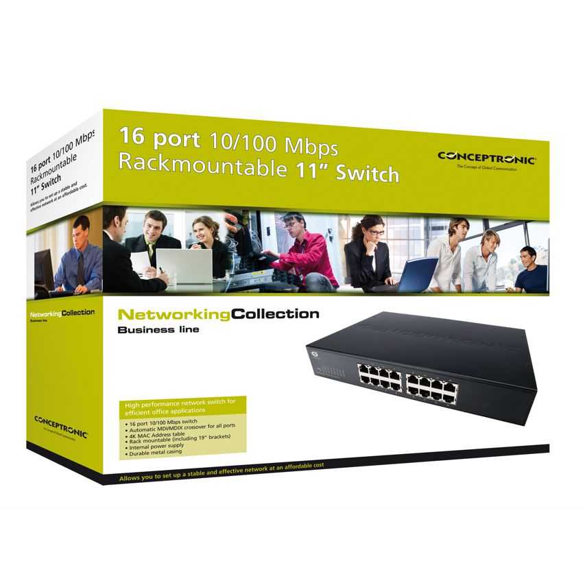 Amplíe o cree una red de alta velocidad con este switch de detección automática de 10/100 Mbps de 16 puertos.