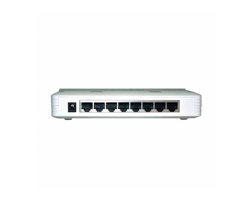 Especificaciones técnicas -Estandar: IEEE 802.3, IEEE 802.3u, IEEE 802.3ab, IEEE 802.1p, IEEE 802.3az draft 3.0 -Topologia: Star -Protocolo: CSMA/CD -Velocidad transferencia de datos: Ethernet: 10Mbps (Half Duplex), 20Mbps (Full Duplex), Fast Ethernet: 100Mbps (Half Duplex), 200Mbps (Full Duplex), Gigabit Ethernet: 2000Mbps (Full Duplex) -Network Media(Cable): 100Base-TX: UTP category 5, 5e cable (maximum 100m) EIA/TIA-568 100¦¸ STP (maximum 100m), 1000Base-TX: UTP category 5e, 6 cable (maximum 100m)EIA/TIA-568 100¦¸ STP (maximum 100m) -Numero de puertos: 8 10/100/1000M RJ45 ports -Indicadores LED: Power, Link/Act -Transfer Method: Store-and-Forward -MAC Address Learning: Automatically learning,automatically aging -Frame Filter Rate: 10Base-T: 14880pps/Port, 100Base-Tx: 148800pps/Port, 1000Base-T: 1488000pps/Port -Frame Forward Rate: 10Base-T: 14880pps/Port, 100Base-Tx: 148800pps/Port, 1000Base-T: 1488000pps/Port