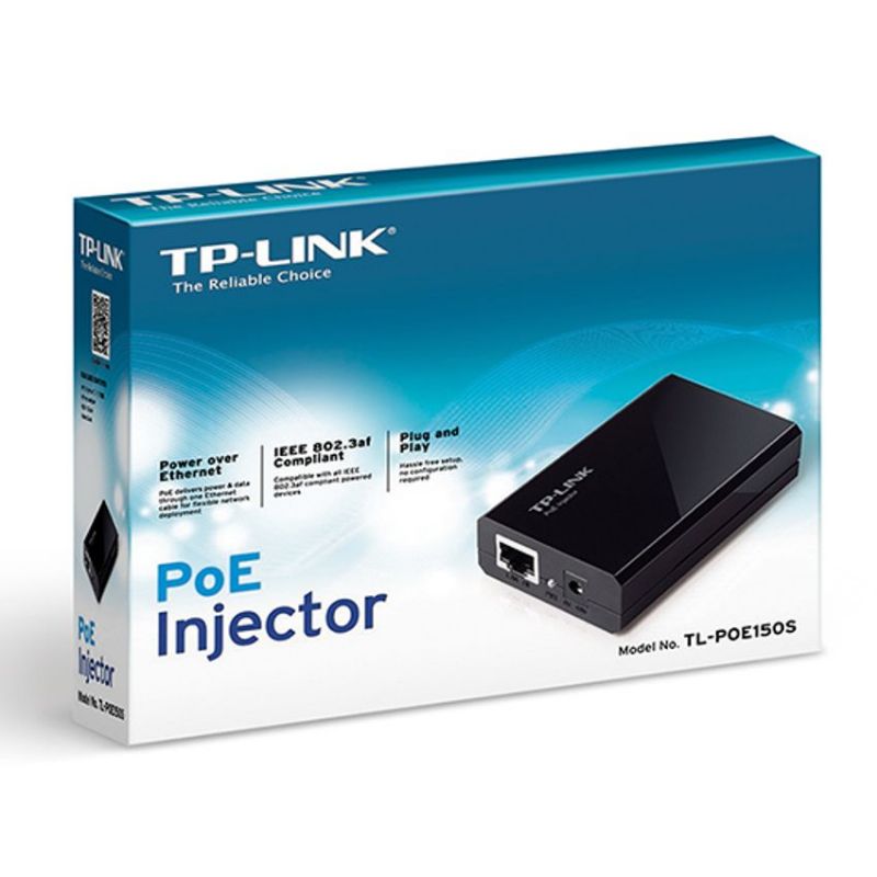 Descripción TP-LINK TL-POE150S. Tipo de interfaz ethernet: Gigabit Ethernet, Ethernet LAN, velocidad de transferencia de datos: 10,100,1000 Mbit/s, Estándares de red: IEEE 802.3af. Color del producto: Negro, Certificación: FCC, CE. Energía sobre Ethernet (PoE): 48 V. Ancho: 80,8 mm, Profundidad: 54 mm, Altura: 24 mm. Ancho del paquete: 198 mm, Profundidad del paquete: 165 mm, Altura del paquete: 65 mm