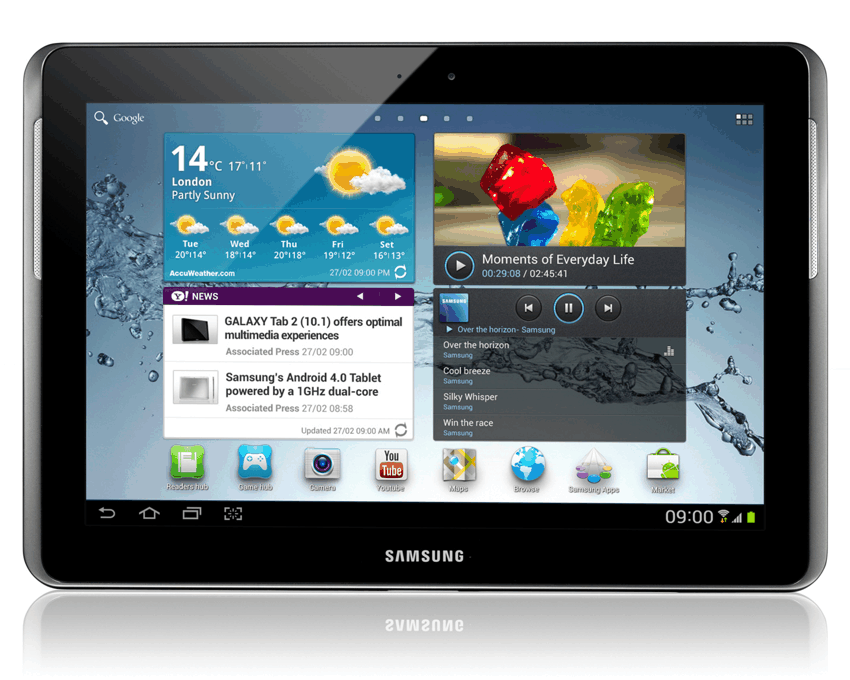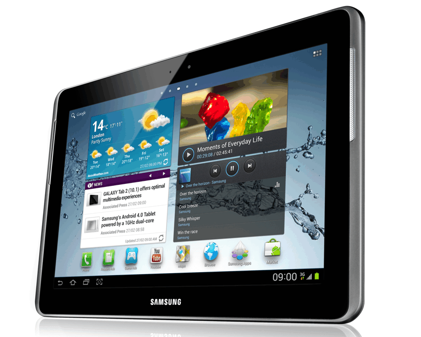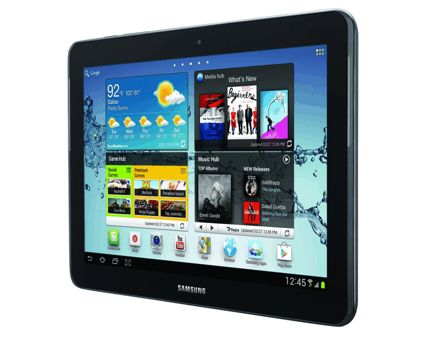 Samsung Galaxy Tab2, 1000 MHz, 1024 MB, 16 GB, Flash, microSD, 32 GB Samsung Galaxy Tab2. Procesador: 1000 MHz. Memoria: 1024 MB. Medios de almacenaje: 16 GB, Flash. Card reader: microSD, 32 GB. Exhibición: 256.5 mm (10.1 "), 1280 x 800 Pixeles, 16:10. Cámara fotográfica: 3 MP, 30 fps, 0.3 MP. Red: 802.11b, 802.11g, 802.11n, 3.0, EDGE, GPRS, GSM, HSPA, HSUPA. Conectividad: 3.5 mm. File formats: AAC, AC3, AMR, FLAC, MIDI, MP3, OGG, WAV, WMA, 3GP, ASF, DivX, FLV, H.263, H.264, MKV, MP4, MPEG4, WMV. Sistema operativo/software: Android 4.0. Battery: Lithium-Ion (Li-Ion), 7000 mAh. Peso y dimensiones: 256.7 mm, 9.7 mm, 175.3 mm