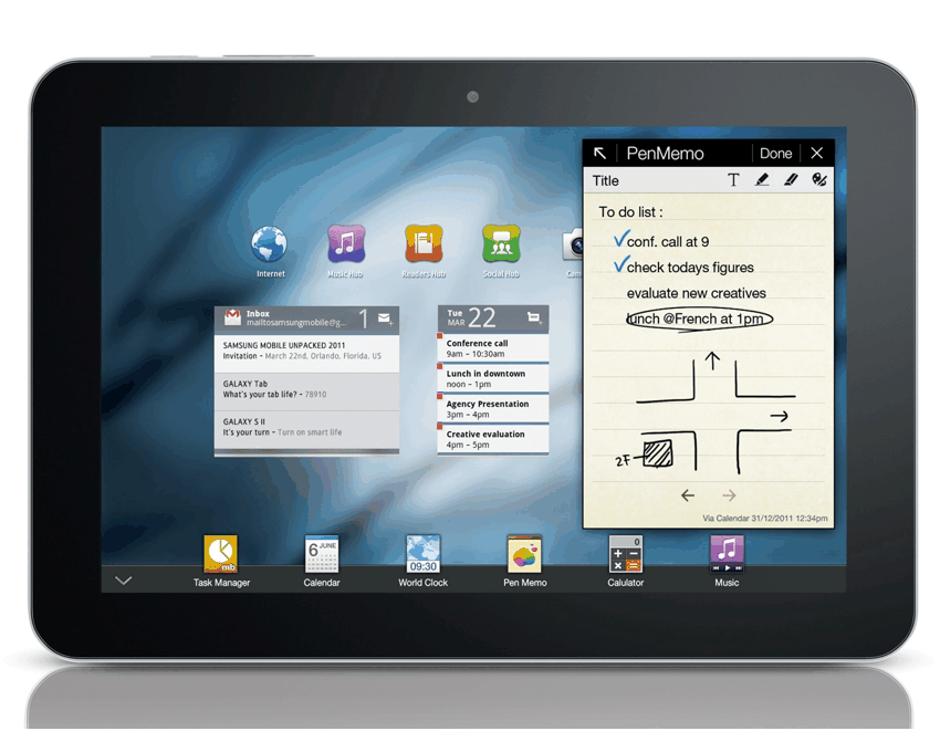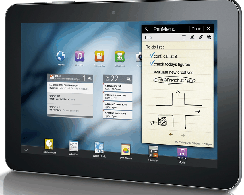 22.606 cm (8.9 ") TFT (1280x800), NVidia Tegra 2 (1GHz), 16G, 3G, 465g, 6100mAh, 2/3MP, USB, Wi-Fi, Negro El nuevo tablet Samsung Galaxy Tab 8,9 te ofrece una mejor experiencia en tu trabajo o mientras juegas. Gracias a su brillante pantalla HD, su navegador web con flash, y a que puedes realizar multitareas y navegar a toda velocidad gracias a su conexión HSPA, llenarás tu mundo de posibilidades.Diseño Disfruta de una movilidad sin igual gracias al diseño increíblemente fino y ligero de GALAXY Tab 8,9. Con tan sólo 465 gramos y un grosor de 8,6 mm, sostener este tablet es como sostener una pluma.Pantalla de inicio Live Panel te permite personalizar la pantalla de inicio de tu tablet y acceder a tus contenidos de forma instantánea incluyendo correo electrónico, galería de imágenes, sitios web favoritos y redes sociales. La ventaja de Live Panel es que los datos se actualizan en tiempo real, permitiéndote acceder a ellos en todo momento y pudiéndolos organizar a tu gusto.Navegación web Navega sin límites. Miles de sitios web utilizan aplicaciones Flash, con tu GALAXY Tab 8,9 y Adobe® Flash® player lo verás todo, tanto si estás navegando por la web o reproduciendo contenido multimedia.Lectura Readers Hub te permite acceder a millones de libros, miles de diarios y revistas en diversos idiomas. Funciones de lectura digital, como el zoom in / out, la ampliación de la fuente y los marcadores virtuales, mejoran la experiencia de lectura electrónica. Disfruta de texto e imágenes con gran detalle gracias a la brillante y amplia pantalla de tu tablet.Comunicación Social Hub organiza y sincroniza fácilmente todos tus contactos online. Unifica todas tus cuentas de correo electrónico, SMS, mensajería instantánea y redes sociales e interactúa con tus contactos como tú quieras. Cuentas con dos puntos de acceso para simplificar la visualización de los contenidos: a través de la pestaña de mensajes y a través de la pestaña de Feeds. Integra los mensajes y los feeds en un único flujo fácil de leer.