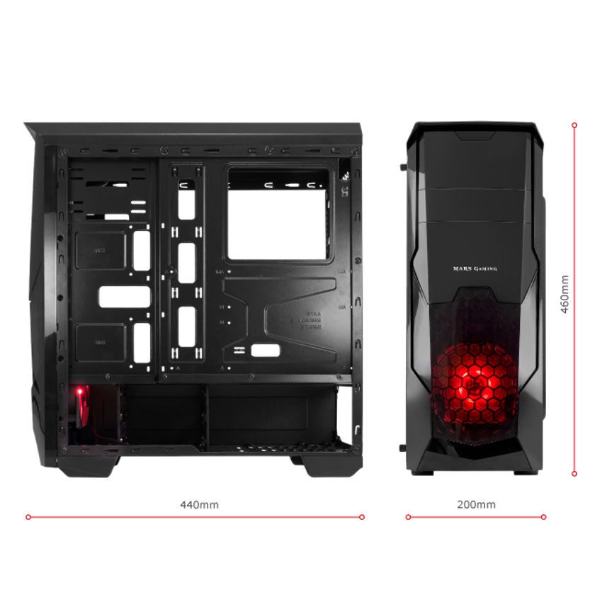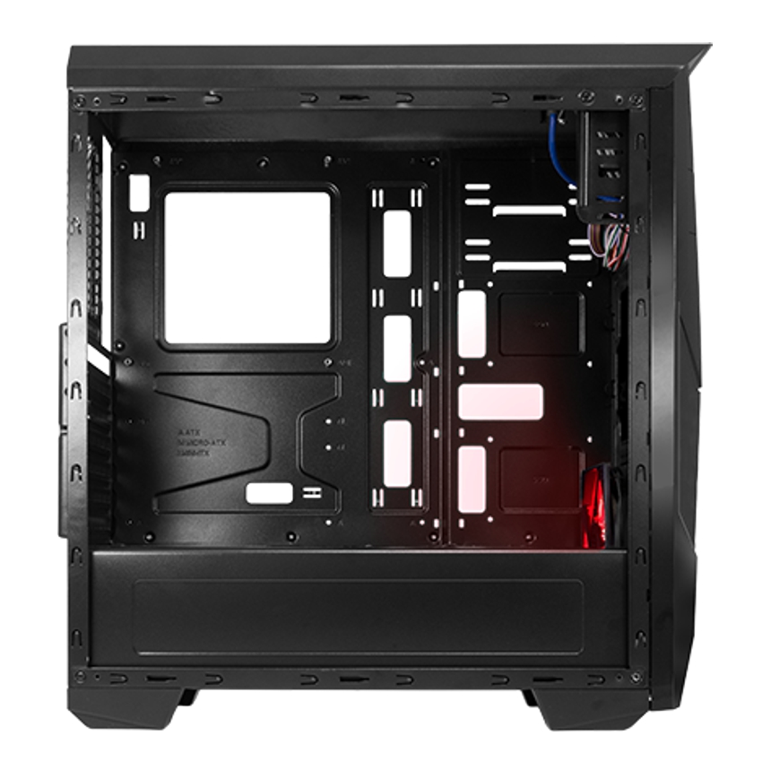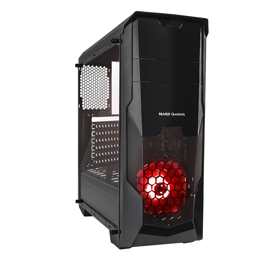 La MC5 destaca por una impresionante ventana total acrílica que permite ver el interior de nuestro PC y una ventana frontal con ventilador delantero e iluminación roja de 6 leds.