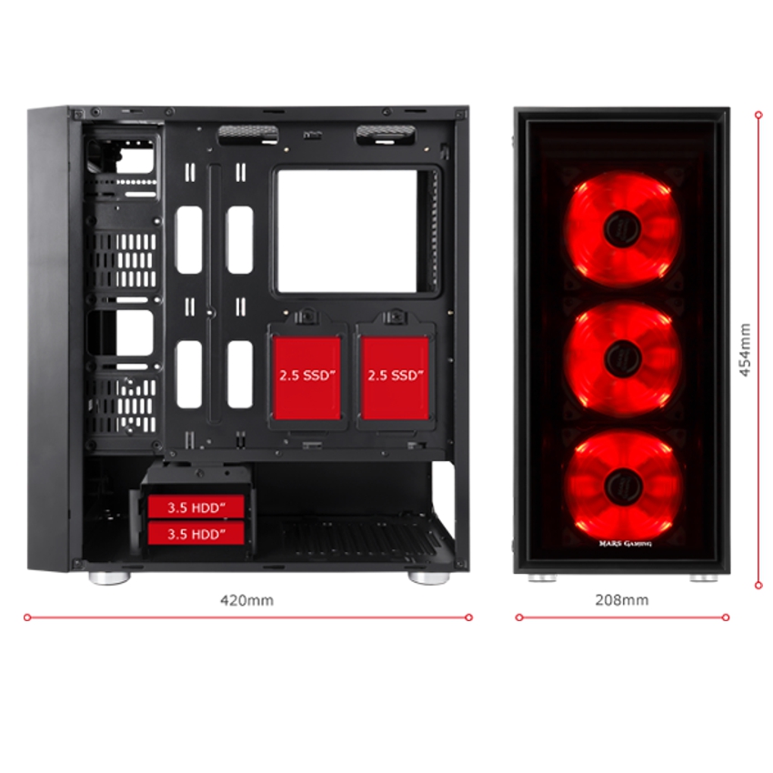 La MC7 es una caja gaming de nueva generación con 3 ventiladores frontales RGB de 120mm.