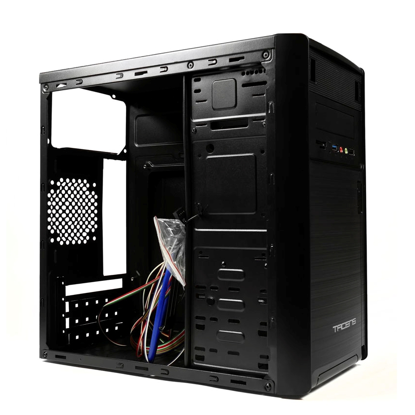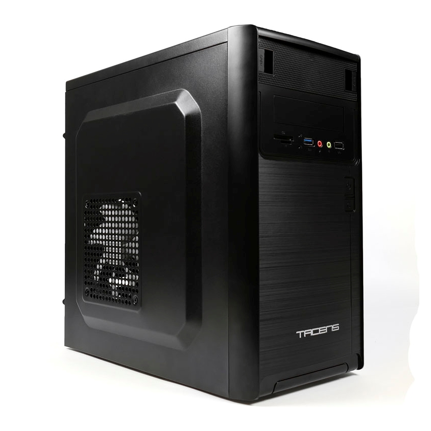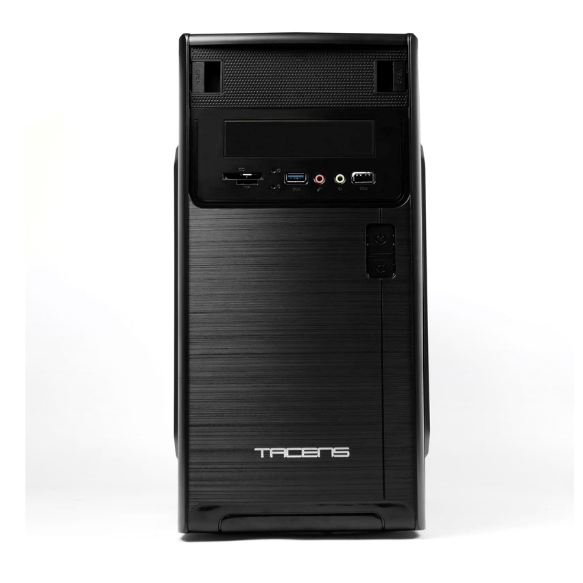 • Placa Micro ATX /Mini ITX • Material: SPCC de 0.4mm (acabado frontal en aluminio pulido) • Ventilador lateral Tacens Fluxus 120mm ultra silencioso (capacidad para otro ventilador trasero de 80mm) • Bahias Externas: 1×5.25’ DVD + 1×3.5’ FDD • Bahias Internas: 3×3.5 HDD + 2×2.5’ SSD • VGA máx: 240mm • Hasta 150mm de altura de CPU • USB 3.0 x 1 + USB 2.0 x 1, HD audio, Lector de tarjetas SD • Sistema interno de guiado de cables