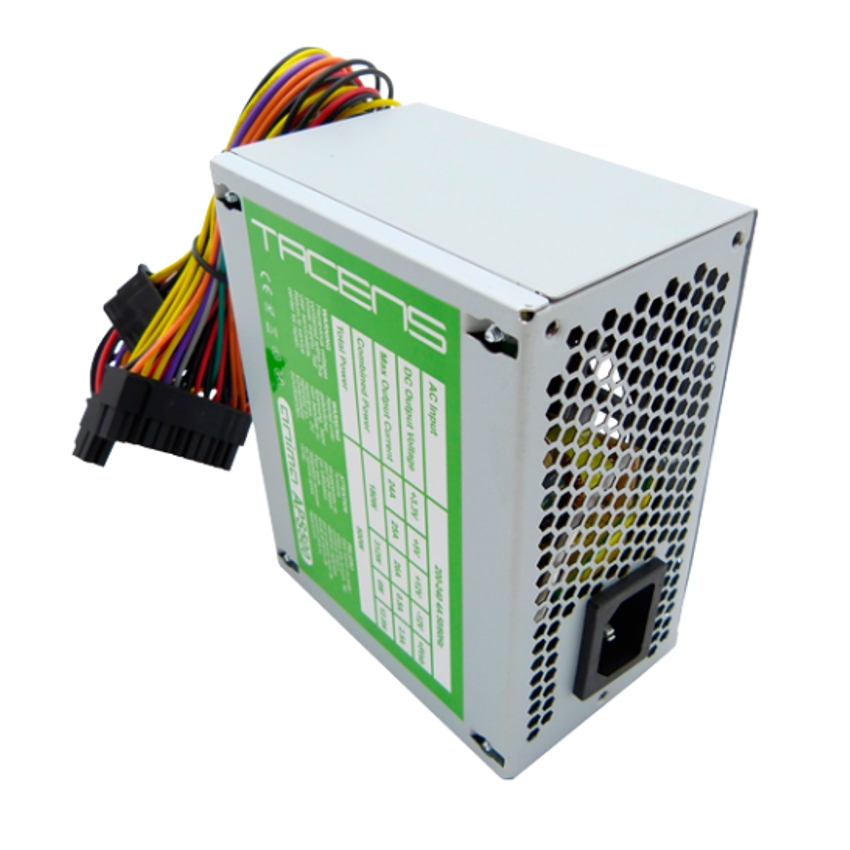 • Cumple con la normativa SFX12V. • Preparada para procesadores Intel “Haswell” • Ventilador TACENS ultrasilencioso de 18dB y 8cm con control de velocidad térmico inteligente y el sistema anti-vibraciones • Potente tecnología de rail 12v único para un rendimiento extremadamente estable y potente • Protecciones eléctricas y filtrado de grado industrial para un funcionamiento seguro • Ingeniería europea y seguridad certificada internacionalmente por reconocidos laboratorios de pruebas • Fabricada conforme a las directivas y normas exigidas por la UE • Cables largos para una máxima compatibilidad: 1x20+4 pines, 4 pines 1x12V, 2SATA, 2xPATA, 1xFDD