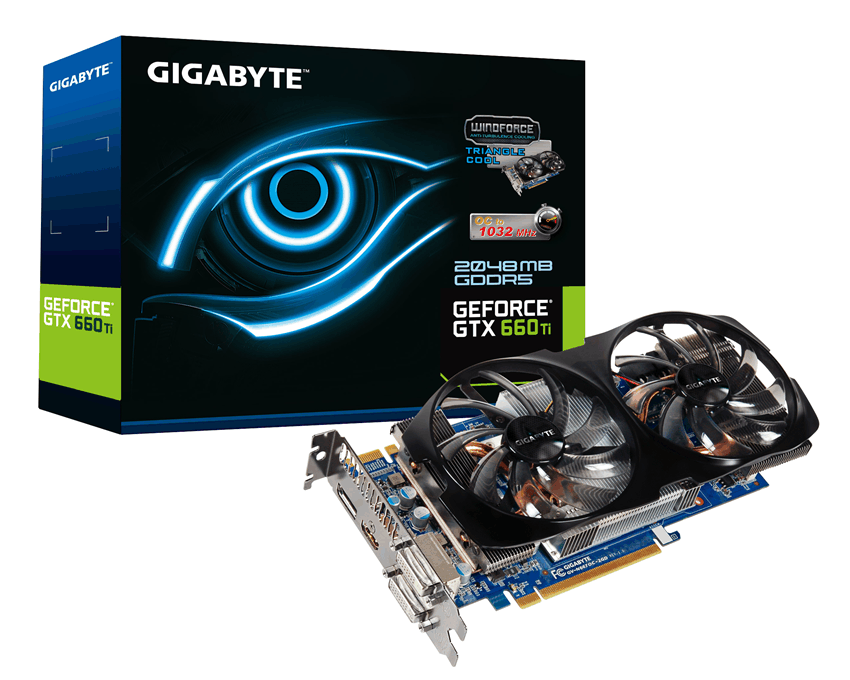 Gigabyte Tarjeta Gráfica GV-N66TOC-2GD. GTX660TI, GDDR5, 2048MB,DVI+HDMI+DP,PCI-e 3.0 GPU: NVIDIA GeForce GTX 660 Ti - Más rápido, más suave, mayor experiencia de juego OC Base a 1032 MHz (estándar: 915 MHz); Boost OC hasta 1111 MHz (estándar: 980 MHz) Hasta 4 pantallas en una sola GPU Sistema de refrigeración GIGABYTE ™ WINDFORCE (con tecnología "Triangle Cool")