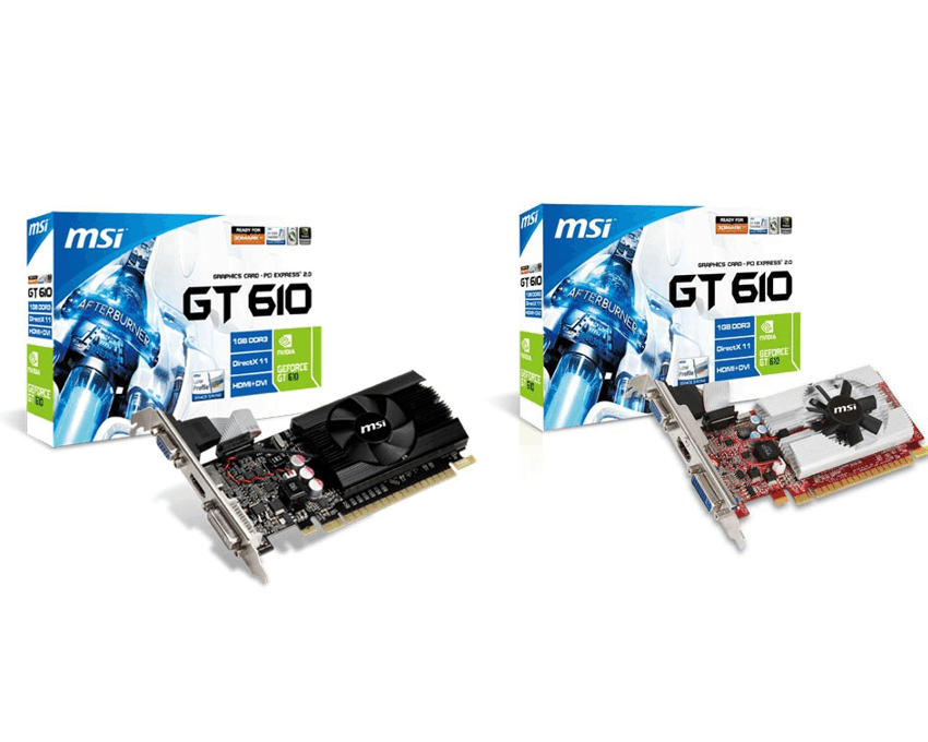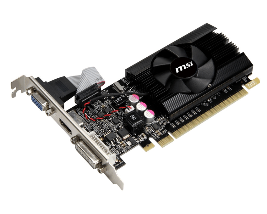 MSI GeForce GT 610 1GB LP V2, GeForce GT 610, 2560 x 1600 Pixeles, NVIDIA, 1024 MB, DDR3-SDRAM, 64 Bit MSI GeForce GT 610 1GB LP V2. Procesador gráfico: GeForce GT 610, Máxima resolución: 2560 x 1600 Pixeles, Graphics processor family: NVIDIA. Adaptador de memoria gráfica: 1024 MB, Tipo de memoria de adaptador gráfico: DDR3-SDRAM, Ancho de datos: 64 Bit. Tipo de interfaz: PCI Express 2.0. Tipo de enfriamiento: Activo. Versión Shader model: 5.0, Versión OpenGL: 4.2, Versión HDMI: 1.4a