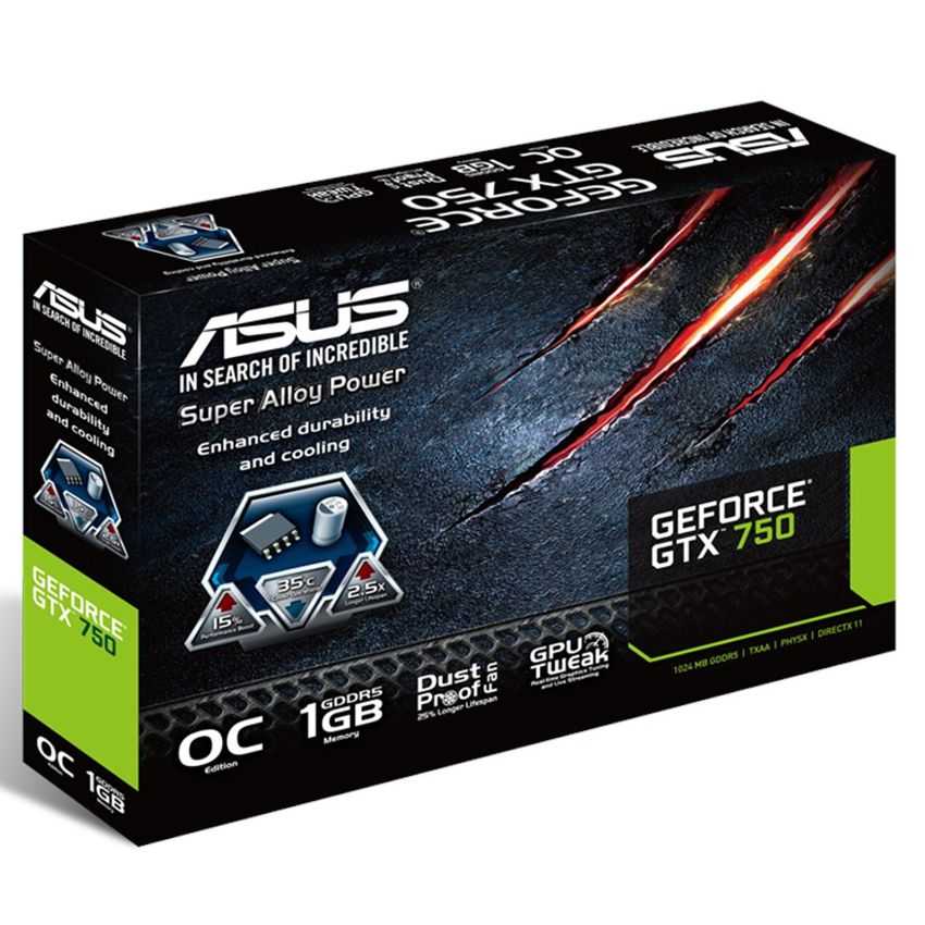 Especificaciones Procesador gráfico: GeForce GTX 750 Máxima resolución: 2560 x 1600 Pixeles CUDA: Si Familia de procesadores de gráficos: NVIDIA Velocidad de reloj: 1056 MHz Aumento de la velocidad de reloj del procesador: 1137 MHz Soporte para proceso paralelo: No Resolución (máxima analógica): 2048 x 1536 Pixeles Resolución (máxima digital): 2560 x 1600 Pixeles Máximas pantallas por tarjeta de video: 3 FireStream: No Núcleos CUDA: 512 Discrete graphics adapter memory: 1 GB Tipo de memoria de adaptador gráfico: GDDR5-SDRAM Ancho de datos: 128 Bit Velocidad de memoria del reloj: 1253 MHz Ancho de banda: 5 GHz Ancho de banda de memoria (max): 80 GB/s Tipo de interfaz: PCI Express 3.0 Número de puertos HDMI: 1 Cantidad de puertos DVI-D: 1 Cantidad de puertos VGA (D-Sub): 1 Sintonizador de TV integrado: No PhysX: Si Versión DirectX: 11.2 Versión OpenGL: 4.4 Alta Definición Total: Si Dual Link DVI: No HDCP: Si Tipo de enfriamiento: Activo Color del producto: Negro Suministro de energía al sistema mínimo: 300W Consumo energético: 75W Profundidad: 11,5 cm Altura: 3,58 cm Ancho: 18,49 cm Manual de usuario: Si Software incluido: ASUS GPU Tweak
