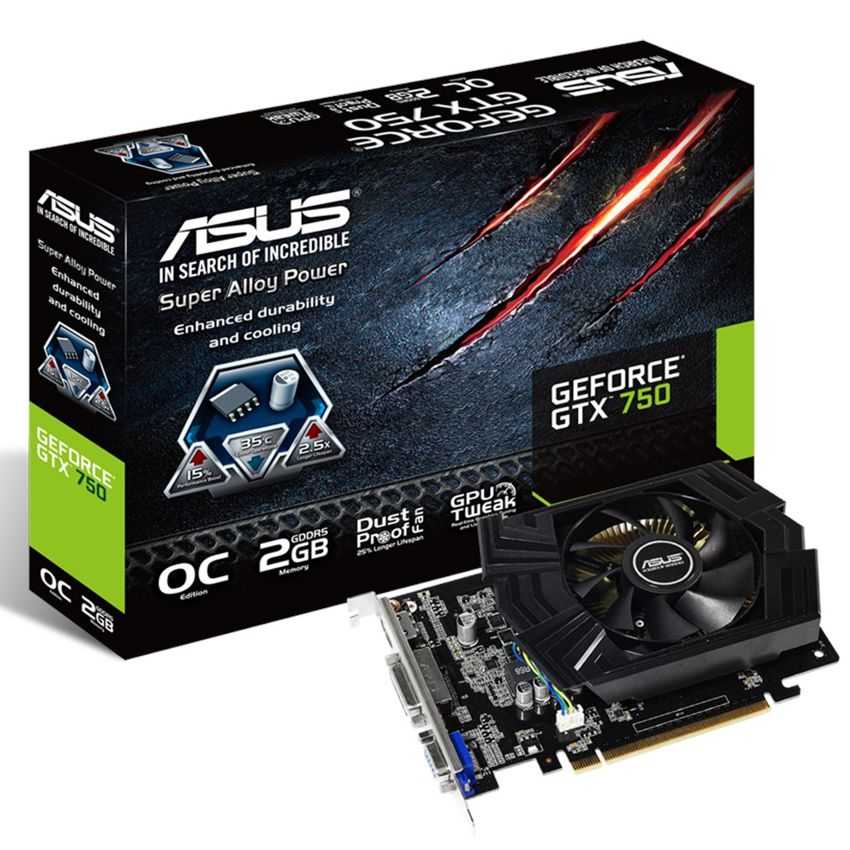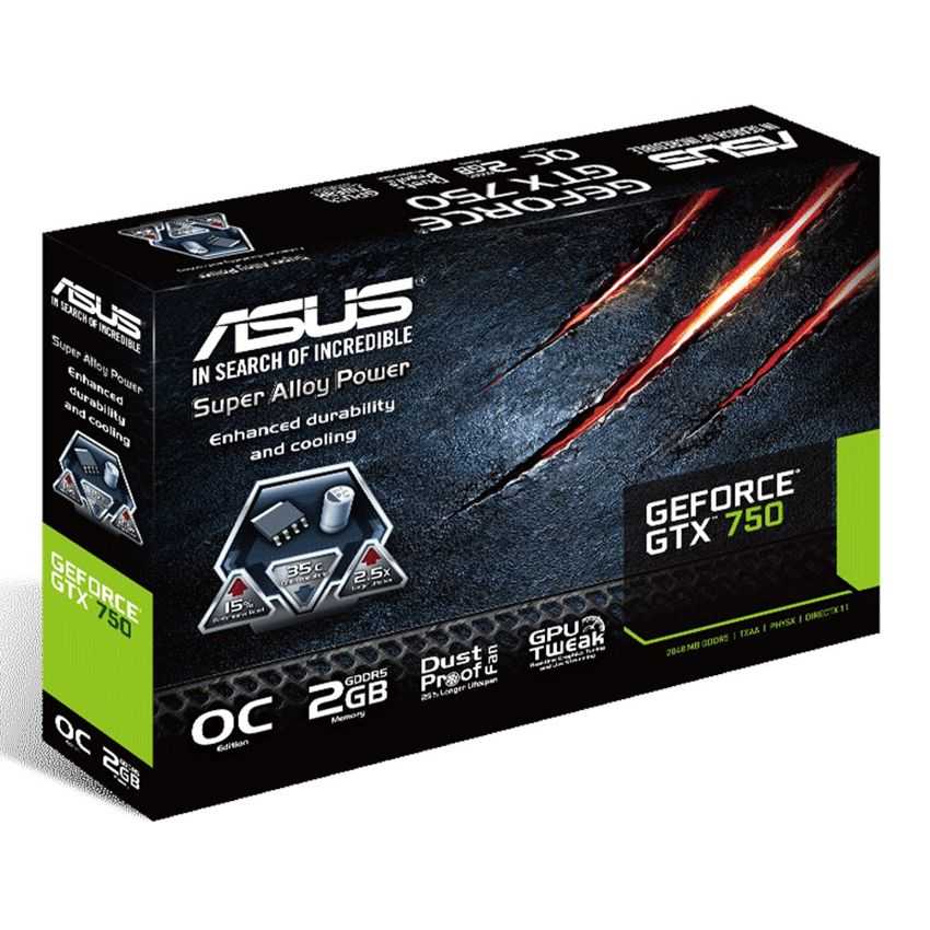 Descripción ASUS GeForce GTX 750 2GB. Procesador gráfico: GeForce GTX 750, Máxima resolución: 2048 x 1536 Pixeles, Familia de procesadores de gráficos: NVIDIA. Discrete graphics adapter memory: 2 GB, Tipo de memoria de adaptador gráfico: GDDR5-SDRAM, Ancho de datos: 128 Bit. Tipo de interfaz: PCI Express 3.0. Versión OpenGL: 4.4. Tipo de enfriamiento: Activo, Factor de forma: ATX