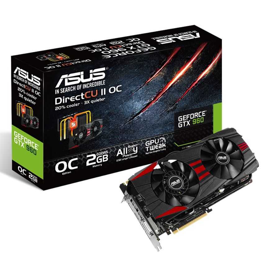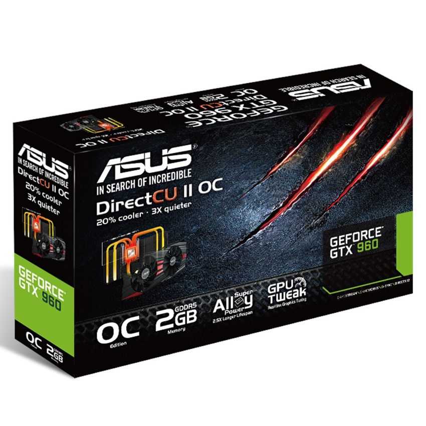 Descripción ASUS GTX960-DC2OC-2GD5-BLACK. Familia de procesadores de gráficos: NVIDIA, Procesador gráfico: GeForce GTX 960, Máxima resolución: 4096 x 2160 Pixeles. Gráficos discretos memoria del adaptador: 2 GB, Tipo de memoria de adaptador gráfico: GDDR5-SDRAM, Ancho de datos: 128 Bit. Tipo de interfaz: PCI Express 3.0, Versión HDMI: 2.0. Versión OpenGL: 4.4. Tipo de enfriamiento: Pasivo, Color del producto: Negro, Rojo