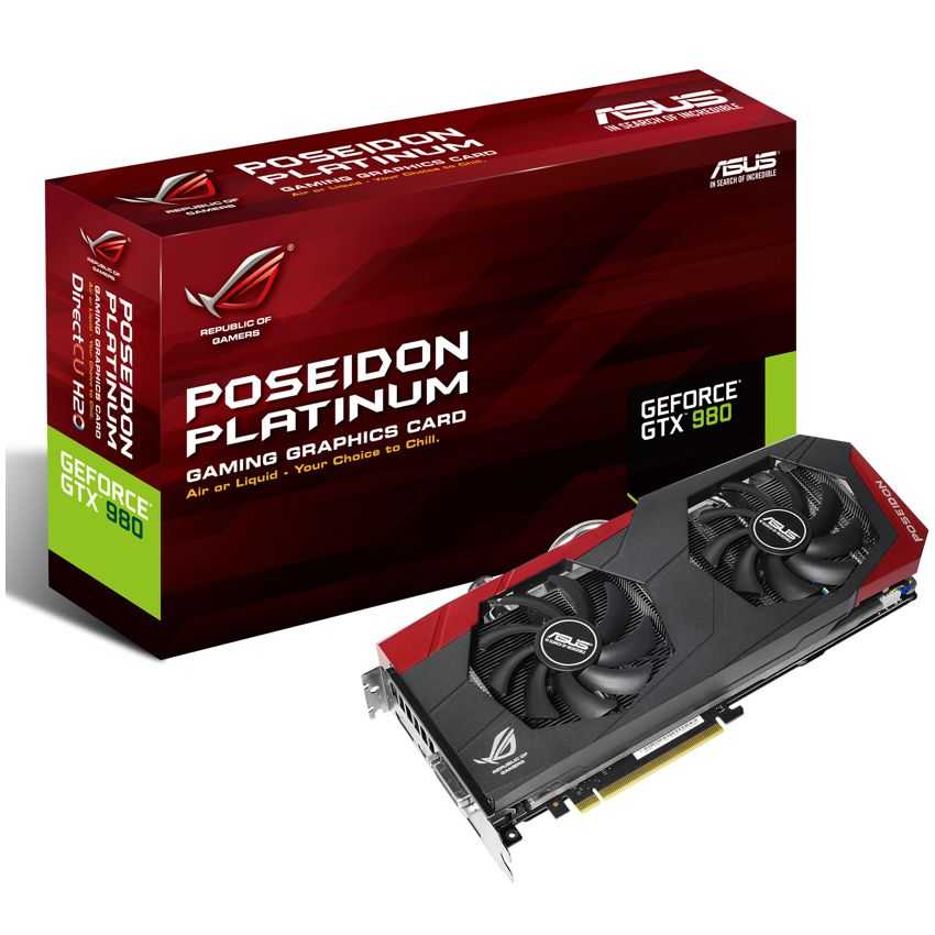 Descripción ASUS POSEIDON-GTX980-P-4GD5. Familia de procesadores de gráficos: NVIDIA, Procesador gráfico: GeForce GTX 980, Máxima resolución: 4096 x 2160 Pixeles. Discrete graphics adapter memory: 4 GB, Tipo de memoria de adaptador gráfico: GDDR5-SDRAM, Ancho de datos: 256 Bit. Tipo de interfaz: PCI Express 3.0, Versión HDMI: 2.0. Versión DirectX: 12.0, Versión OpenGL: 4.4. Tipo de enfriamiento: Activo