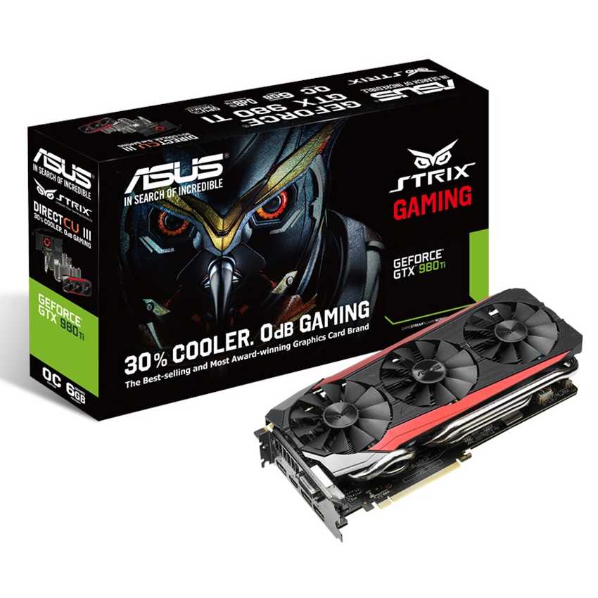 DescripciónASUS STRIX-GTX980TI-DC3-6GD5-GAMING. Familia de procesadores de gráficos: NVIDIA, Procesador gráfico: GeForce GTX 980 Ti, Máxima resolución: 4096 x 2160 Pixeles. Gráficos discretos memoria del adaptador: 6 GB, Tipo de memoria de adaptador gráfico: GDDR5-SDRAM, Ancho de datos: 384 bit. Tipo de interfaz: PCI Express 3.0, Versión HDMI: 2.0. Versión OpenGL: 4.5. Tipo de enfriamiento: Activo, Color del producto: Negro, RojoEspecificacionesFamilia de procesadores de gráficos: NVIDIAProcesador gráfico: GeForce GTX 980 TiMáxima resolución: 4096 x 2160 PixelesCUDA: SiFrecuencia del procesador: 1000 MHzAumento de la velocidad de reloj del procesador: 1075 MHzResolución (máxima digital): 4096 x 2160 PixelesNúcleos CUDA: 2816Gráficos discretos memoria del adaptador: 6 GBTipo de memoria de adaptador gráfico: GDDR5-SDRAMAncho de datos: 384 bitVelocidad de memoria del reloj: 7010 MHzTipo de interfaz: PCI Express 3.0Número de puertos HDMI: 1Cantidad de puertos DVI-I: 1Cantidad de DisplayPorts: 3Versión HDMI: 2.0Sintonizador de TV integrado: NoPhysX: NoVersión OpenGL: 4.5Alta Definición Total: SiHDCP: SiTipo de enfriamiento: ActivoNúmero de ranuras: 2Color del producto: Negro, RojoConsumo energético: 375 WConectores de energia suplementario: 2x 8-pinProfundidad: 30,5 cmAltura: 15,2 cmAncho: 3,98 cm