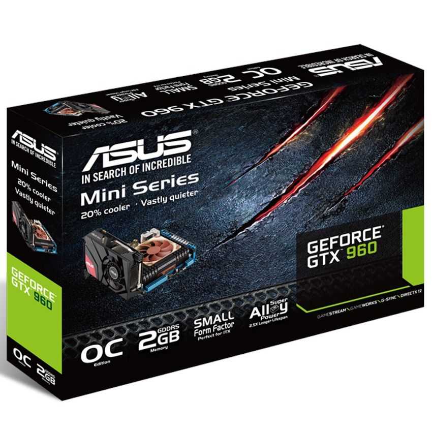 Descripción ASUS GTX960-MOC-2GD5. Familia de procesadores de gráficos: NVIDIA, Procesador gráfico: GeForce GTX 960, Frecuencia del procesador: 1190 MHz. Gráficos discretos memoria del adaptador: 2 GB, Tipo de memoria de adaptador gráfico: GDDR5-SDRAM, Ancho de datos: 128 Bit. Tipo de interfaz: PCI Express 3.0, Versión HDMI: 2.0. Tipo de enfriamiento: Activo. Consumo energético: 150W