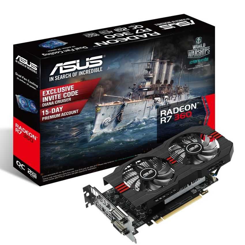 Descripción Refrigeración superior, menos ruido y una acción más rápida La ASUS R7 360 ofrece un rendimiento mejorado, una manufactura perfeccionada y reforzada para mejorar su fiabilidad y longevidad. Cuenta con la nueva GPU AMD® Radeon? R7 360 y tecnologías exclusivas de ASUS como dos ventiladores que multiplican el flujo de aire x2 y ofrecen un rendimiento 3 veces más silencioso; la tecnología Auto-Extreme con Super Alloy Power II ofrece la mejor calidad y fiabilidad, y GPU Tweak II con XSplitGamecaster para ajustar el rendimiento y compartir tus partidas en vivo.