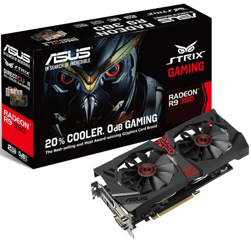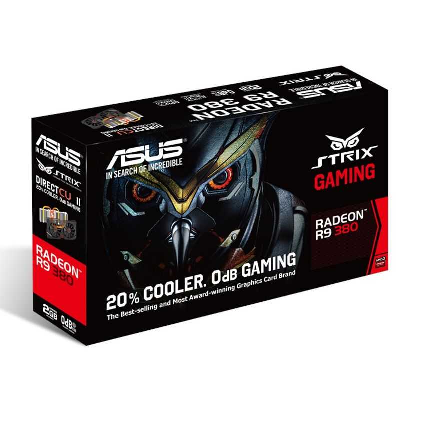 Descripción ASUS STRIX-R9380-DC2-2GD5-GAMING. Familia de procesadores de gráficos: AMD, Procesador gráfico: Radeon R9 380, Máxima resolución: 2560 x 1600 Pixeles. Gráficos discretos memoria del adaptador: 2 GB, Tipo de memoria de adaptador gráfico: GDDR5-SDRAM, Ancho de datos: 256 Bit. Tipo de interfaz: PCI Express 3.0. Versión OpenGL: 4.4. Tipo de enfriamiento: Activo, Color del producto: Negro, Rojo