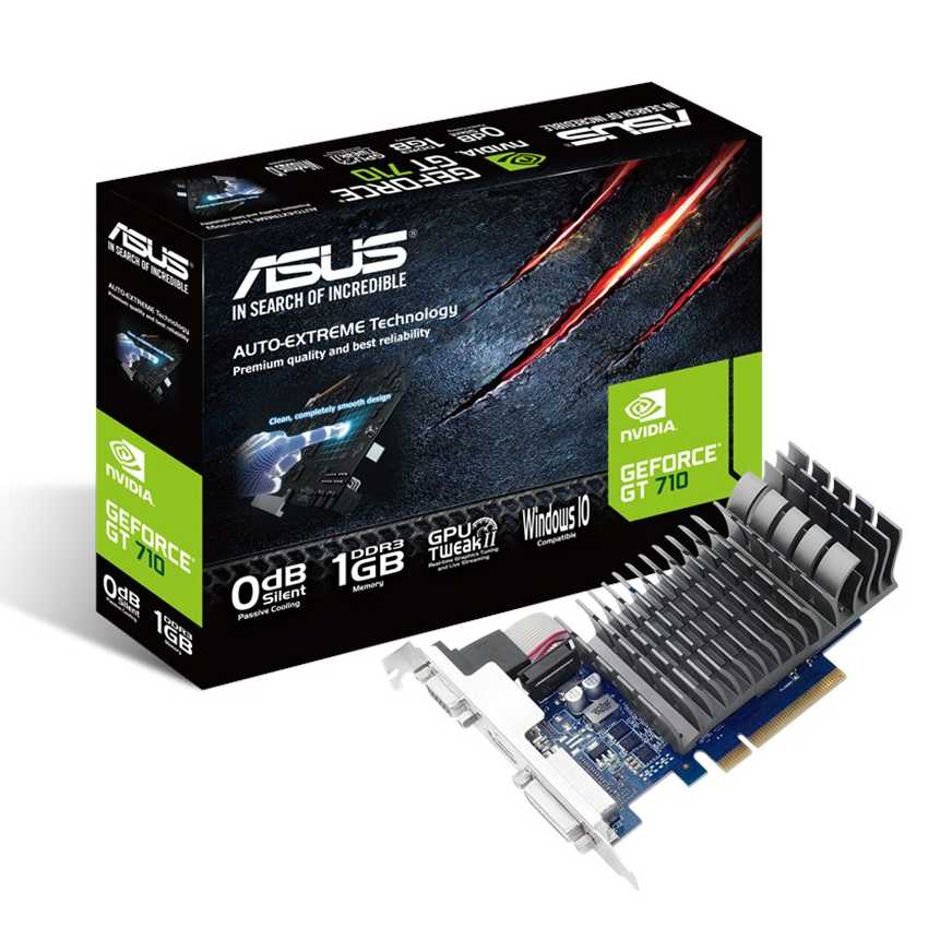 Especificaciones Graphics Engine: NVIDIA GeForce GT 710 Bus Standard: PCI Express 2.0 OpenGL: OpenGL®4.4 Video Memory: DDR3 1GB Engine Clock: 954 MHz CUDA Core: 192 Memory Clock: 1800 MHz Memory Interface: 64-bit Resolution: DVI Max Resolution : 2560x1600 Interface: - D-Sub Output : Yes x 1 (Native) - DVI Output : Yes x 1 (Native) (DVI-D) - HDMI Output : Yes x 1 (Native) - HDCP Support : Yes Software: ASUS GPU Tweak II & Driver Dimensions: 13.7 x 6.9 x3.3 Centimeter