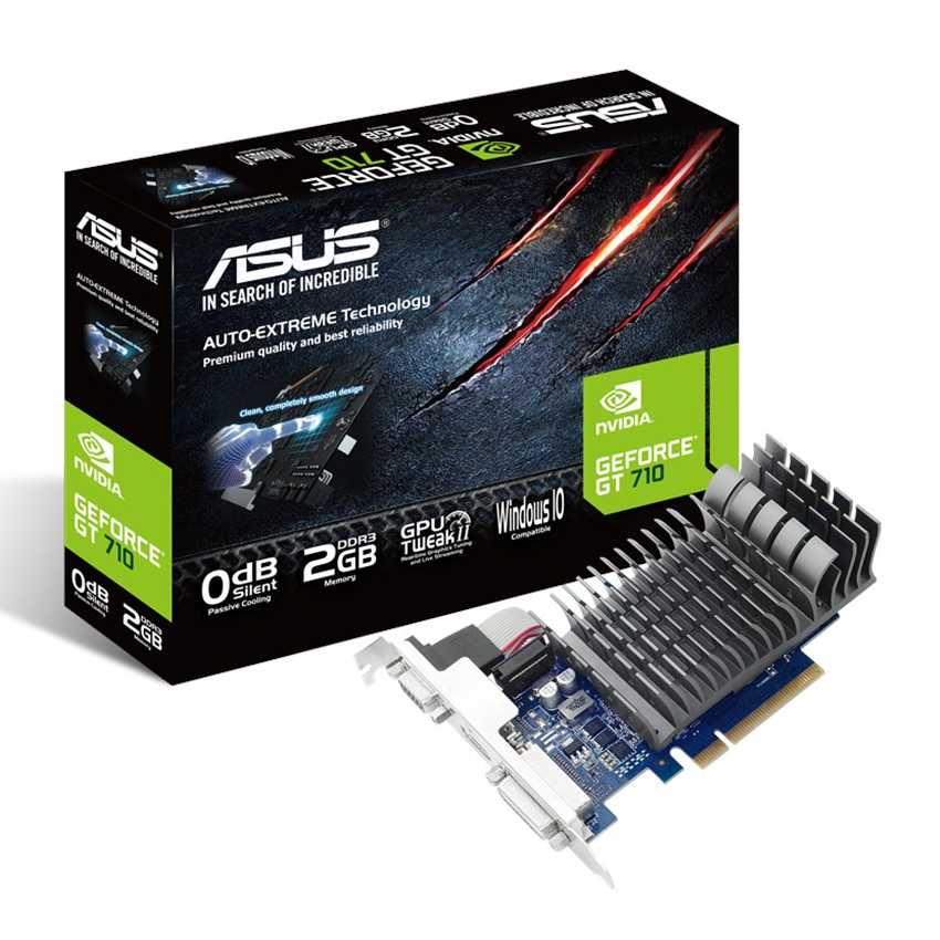 Especificaciones Graphics Engine: NVIDIA GeForce GT 710 Bus Standard: PCI Express 2.0 OpenGL: OpenGL®4.4 Video Memory: DDR3 2GB Engine Clock: 954 MHz CUDA Core: 192 Memory Clock: 1800 MHz Memory Interface: 64-bit Resolution: DVI Max Resolution : 2560x1600 Interface: - D-Sub Output : Yes x 1 (Native) - DVI Output : Yes x 1 (Native) (DVI-D) - HDMI Output : Yes x 1 (Native) - HDCP Support : Yes Software: ASUS GPU Tweak II & Driver Dimensions: 13.7 x 6.9 x3.3 Centimeter