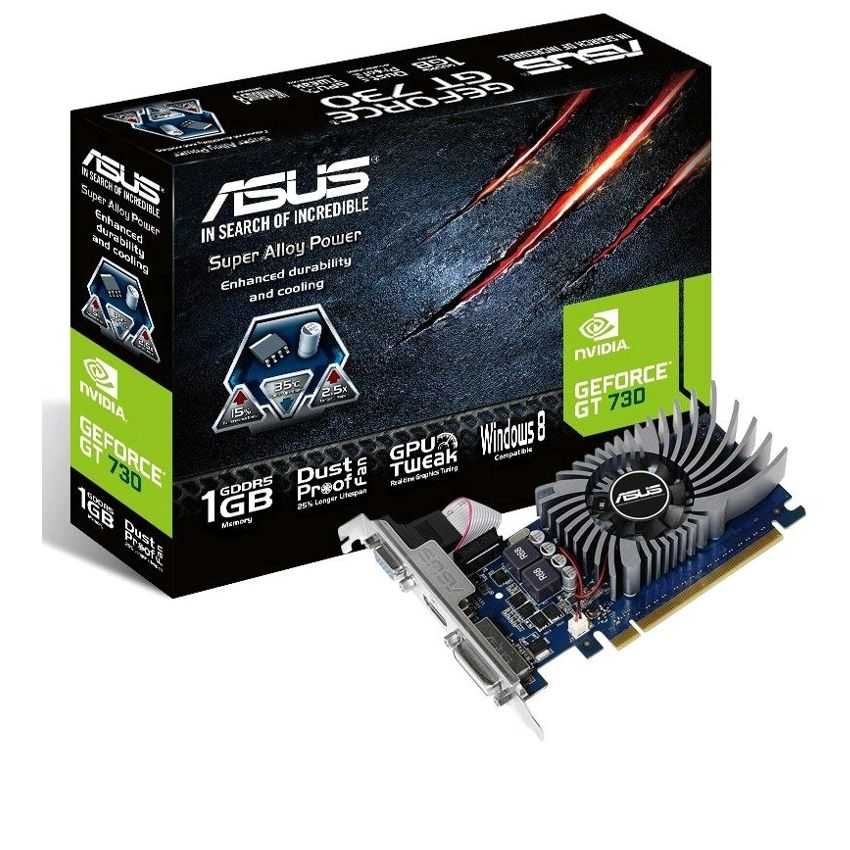 Descripción ASUS GT730-1GD5-BRK. Familia de procesadores de gráficos: NVIDIA, Procesador gráfico: GeForce GT 730, Máxima resolución: 2560 x 1600 Pixeles. Discrete graphics adapter memory: 1 GB, Tipo de memoria de adaptador gráfico: GDDR5-SDRAM, Ancho de datos: 64 Bit. Tipo de interfaz: PCI Express 2.0. Versión OpenGL: 4.4. Tipo de enfriamiento: Activo
