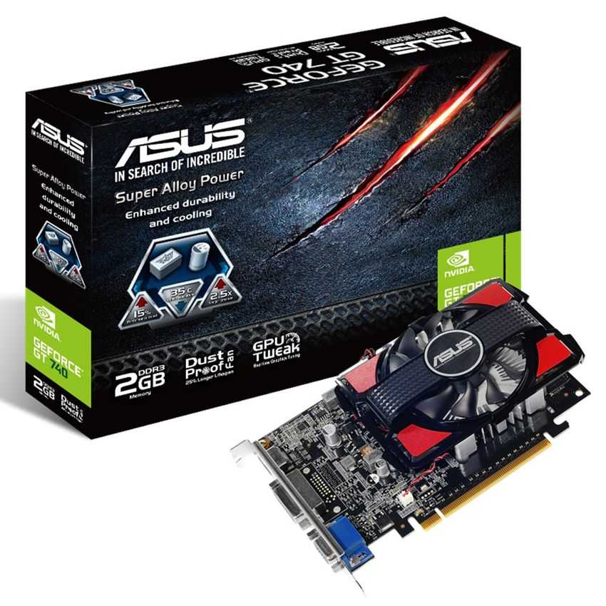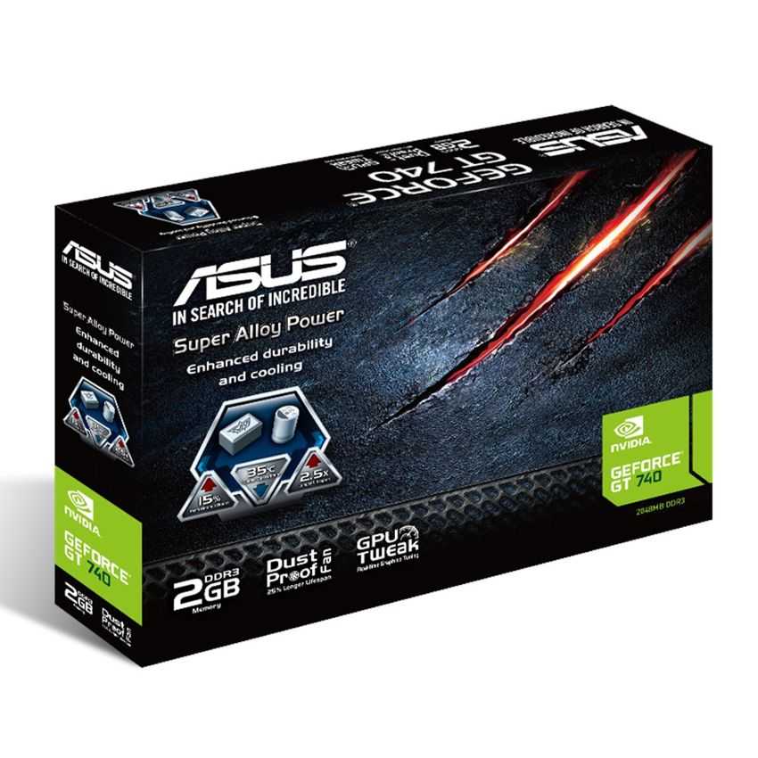 Descripción ASUS NVIDIA GeForce GT 740 2GB. Procesador gráfico: GeForce GT 740, Máxima resolución: 2560 x 1600 Pixeles, Familia de procesadores de gráficos: NVIDIA. Discrete graphics adapter memory: 2 GB, Tipo de memoria de adaptador gráfico: DDR3-SDRAM, Ancho de datos: 128 Bit. Tipo de interfaz: PCI Express 3.0. Versión DirectX: 11.1, Versión OpenGL: 4.4. Tipo de enfriamiento: Activo
