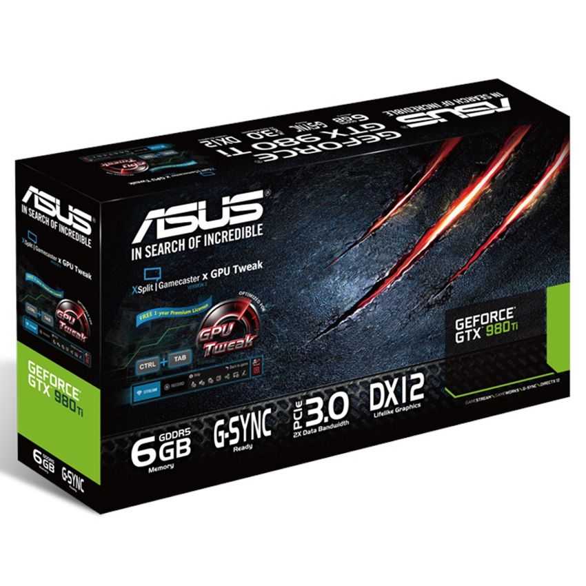 DescripciónASUS GTX980TI-6GD5. Familia de procesadores de gráficos: NVIDIA, Procesador gráfico: GeForce GTX 980 Ti, Máxima resolución: 4096 x 2160 Pixeles. Gráficos discretos memoria del adaptador: 6 GB, Tipo de memoria de adaptador gráfico: GDDR5-SDRAM, Ancho de datos: 384 Bit. Tipo de interfaz: PCI Express 3.0, Versión HDMI: 2.0. Versión OpenGL: 4.5. Tipo de enfriamiento: ActivoEspecificacionesFamilia de procesadores de gráficos: NVIDIAProcesador gráfico: GeForce GTX 980 TiMáxima resolución: 4096 x 2160 PixelesCUDA: SiFrecuencia del procesador: 1000 MHzAumento de la velocidad de reloj del procesador: 1075 MHzResolución (máxima digital): 4096 x 2160 PixelesNúcleos CUDA: 2816Gráficos discretos memoria del adaptador: 6 GBTipo de memoria de adaptador gráfico: GDDR5-SDRAMAncho de datos: 384 BitVelocidad de memoria del reloj: 7010 MHzTipo de interfaz: PCI Express 3.0Número de puertos HDMI: 1Cantidad de puertos DVI-I: 1Cantidad de DisplayPorts: 3Versión HDMI: 2.0Versión OpenGL: 4.5Alta Definición Total: SiDual Link DVI: SiHDCP: SiVisión 3D: SiTipo de enfriamiento: ActivoProfundidad: 26,67 cmAltura: 3,81 cmAncho: 11,12 cm