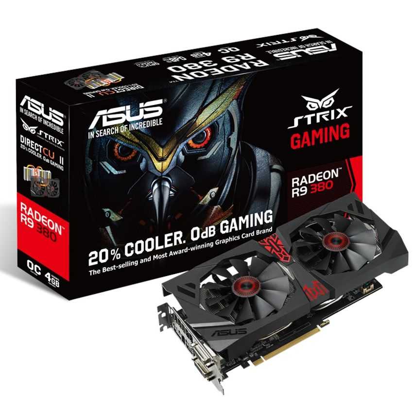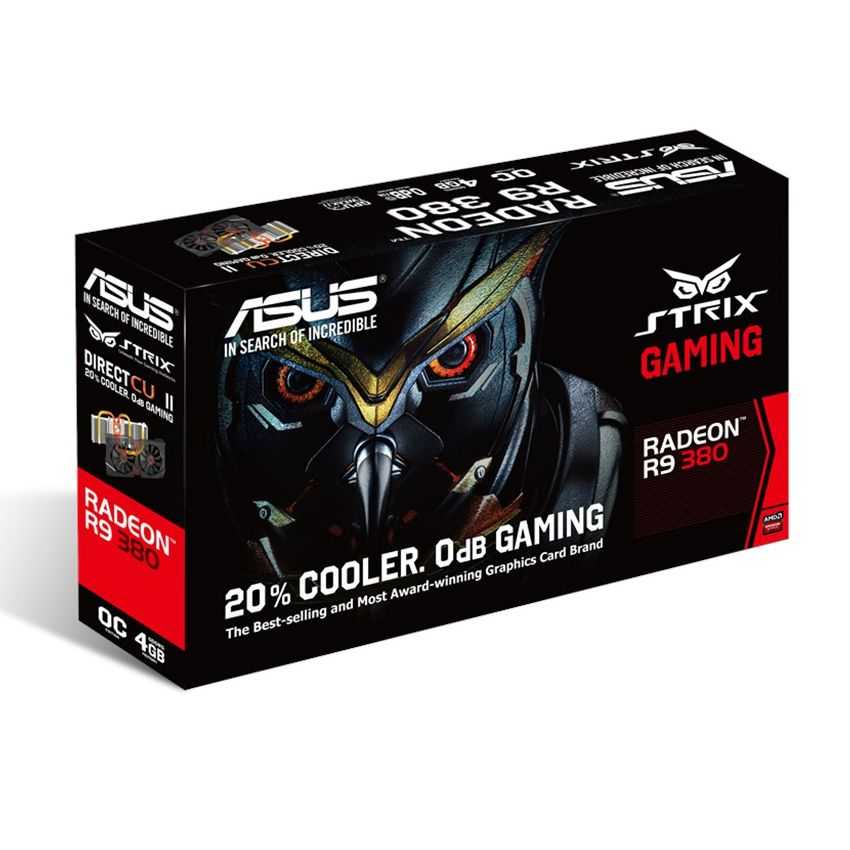 Descripción ASUS STRIX-R9380-DC2OC-4GD5-GAMING. Familia de procesadores de gráficos: AMD, Procesador gráfico: Radeon R9 380, Máxima resolución: 2560 x 1600 Pixeles. Gráficos discretos memoria del adaptador: 4 GB, Tipo de memoria de adaptador gráfico: GDDR5-SDRAM, Ancho de datos: 256 Bit. Tipo de interfaz: PCI Express 3.0. Versión OpenGL: 4.4. Tipo de enfriamiento: Activo, Color del producto: Zanahoria, Negro, Rojo