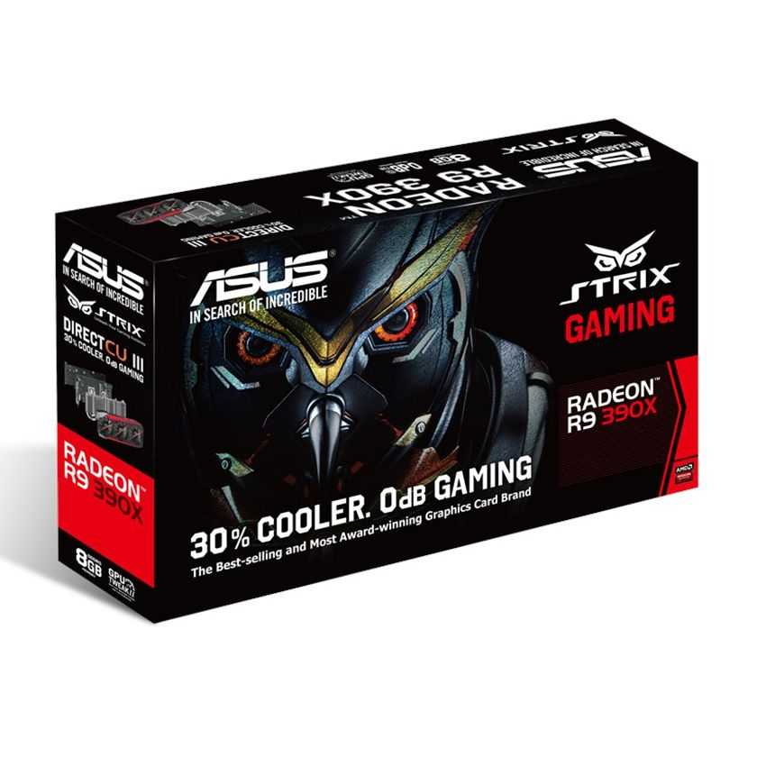 Descripción ASUS STRIX-R9390X-DC3OC-8GD5-GAMING. Familia de procesadores de gráficos: AMD, Procesador gráfico: Radeon R9 390X, Máxima resolución: 4096 x 2160 Pixeles. Gráficos discretos memoria del adaptador: 8 GB, Tipo de memoria de adaptador gráfico: GDDR5-SDRAM, Ancho de datos: 512 Bit. Tipo de interfaz: PCI Express 3.0. Versión OpenGL: 4.4. Tipo de enfriamiento: Activo