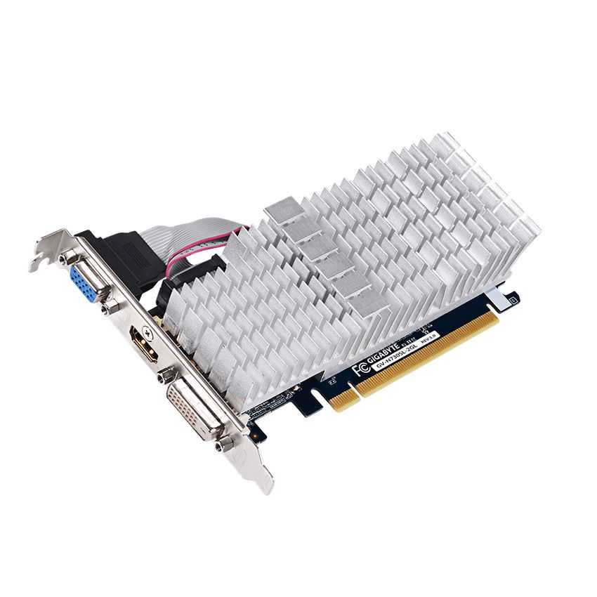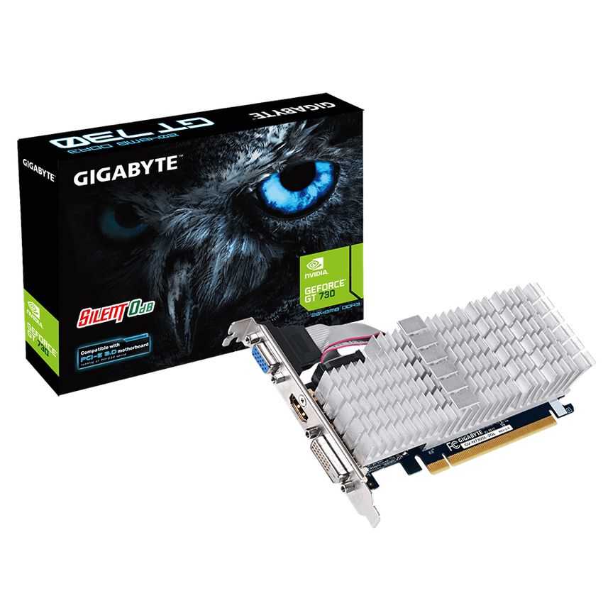 Descripción Gigabyte GV-N730SL-2GL. Familia de procesadores de gráficos: NVIDIA, Procesador gráfico: GeForce GT 730, Máxima resolución: 4096 x 2160 Pixeles. Discrete graphics adapter memory: 2 GB, Tipo de memoria de adaptador gráfico: DDR3-SDRAM, Ancho de datos: 64 Bit. Tipo de interfaz: PCI Express x8. Versión DirectX: 11.2, Versión OpenGL: 4.4. Tipo de enfriamiento: Pasivo, Factor de forma: LP, Color del producto: Plata