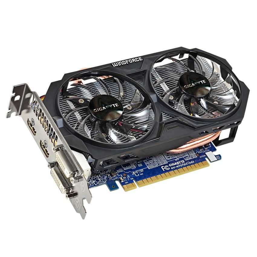 Descripción Gigabyte GV-N75TOC-2GI. Procesador gráfico: GeForce GTX 750 Ti, Máxima resolución: 4096 x 2160 Pixeles, Familia de procesadores de gráficos: NVIDIA. Discrete graphics adapter memory: 2 GB, Tipo de memoria de adaptador gráfico: GDDR5-SDRAM, Ancho de datos: 128 Bit. Tipo de interfaz: PCI Express 3.0. Versión DirectX: 11.2, Versión Shader model: 5.0, Versión OpenGL: 4.4. Tipo de enfriamiento: Activo, Factor de forma: ATX