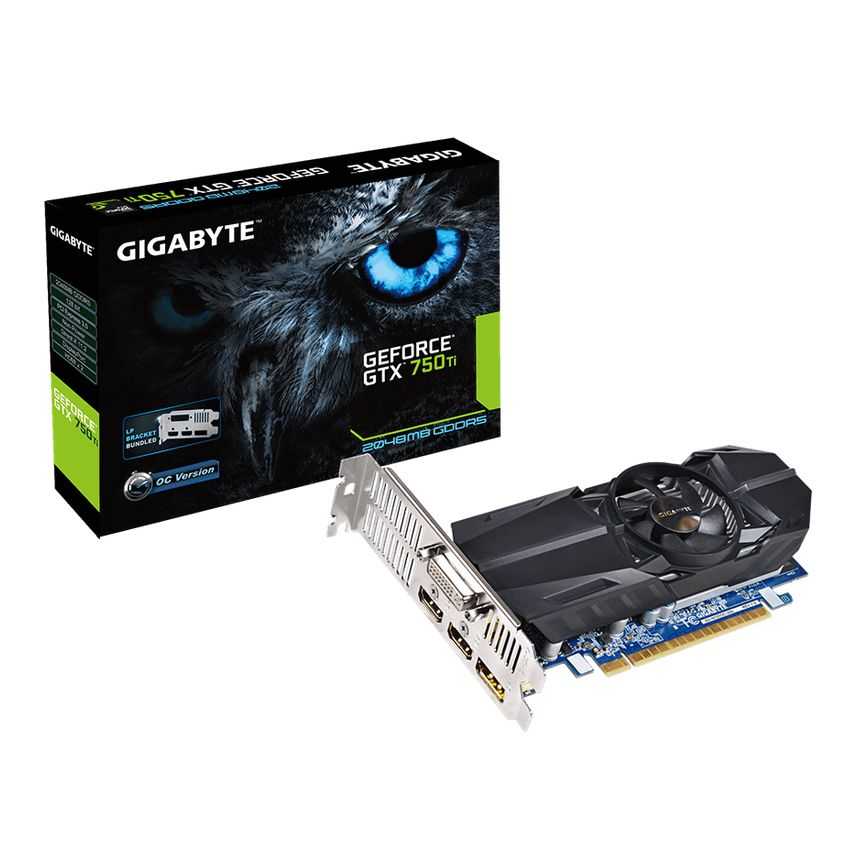 Descripción Gigabyte GV-N75TOC-2GL. Familia de procesadores de gráficos: NVIDIA, Procesador gráfico: GeForce GTX 750 Ti, Máxima resolución: 4096 x 2160 Pixeles. Gráficos discretos memoria del adaptador: 2 GB, Tipo de memoria de adaptador gráfico: GDDR5-SDRAM, Ancho de datos: 128 Bit. Tipo de interfaz: PCI Express x16 3.0. Versión DirectX: 11.2, Versión OpenGL: 4.4. Tipo de enfriamiento: Activo, Factor de forma: LP, Color del producto: Negro