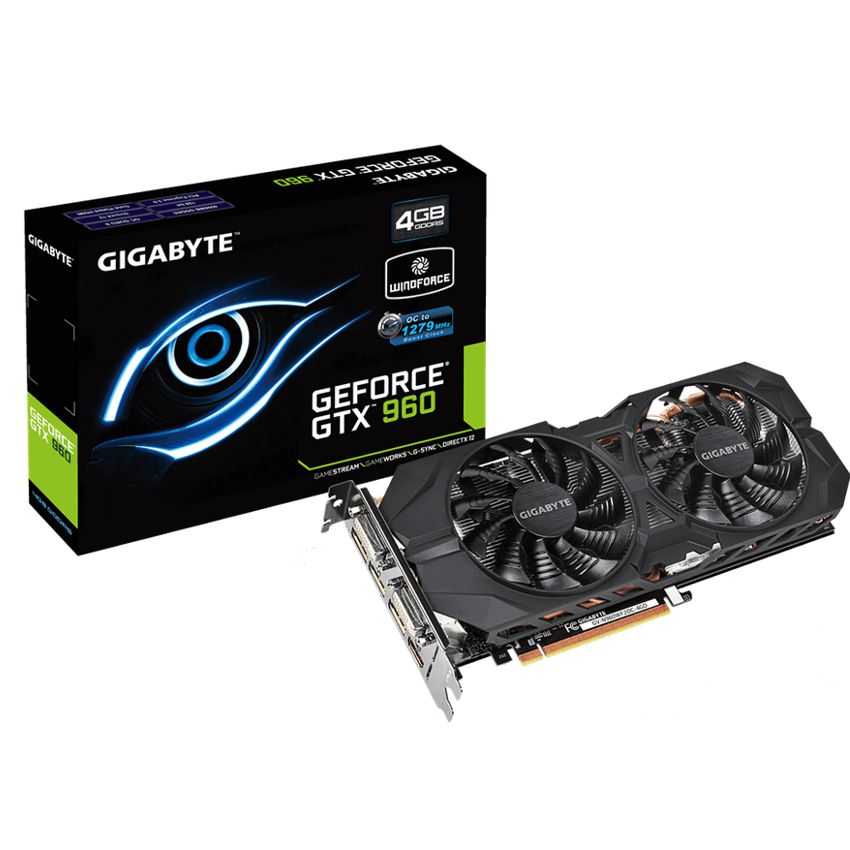 Descripción Gigabyte GV-N960WF2OC-4GD. Familia de procesadores de gráficos: NVIDIA, Procesador gráfico: GeForce GTX 960, Máxima resolución: 4096 x 2160 Pixeles. Gráficos discretos memoria del adaptador: 4 GB, Tipo de memoria de adaptador gráfico: GDDR5-SDRAM, Ancho de datos: 128 Bit. Tipo de interfaz: PCI Express 3.0. Versión DirectX: 12.0, Versión OpenGL: 4.4. Tipo de enfriamiento: Activo, Factor de forma: ATX