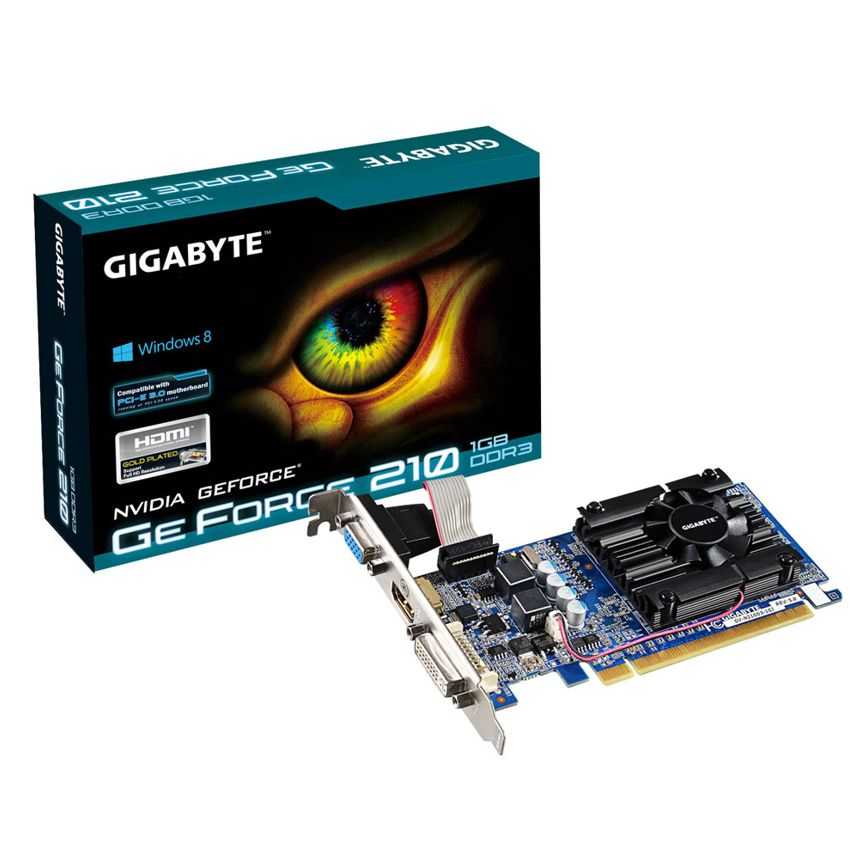Descripción Gigabyte GV-N210D3-1GI. Familia de procesadores de gráficos: NVIDIA, Procesador gráfico: GeForce 210, Máxima resolución: 2560 x 1600 Pixeles. Gráficos discretos memoria del adaptador: 1 GB, Tipo de memoria de adaptador gráfico: DDR3-SDRAM, Ancho de datos: 64 Bit. Tipo de interfaz: PCI Express 2.0. Versión DirectX: 10.1, Versión OpenGL: 3.1. Tipo de enfriamiento: Activo, Factor de forma: ATX, Certificación: RoHS