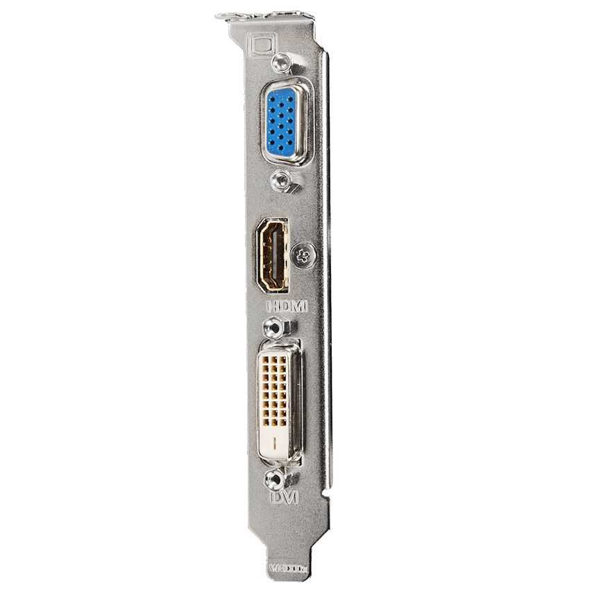 Especificaciones Chipset: GeForce GT 710 Core Clock: 954 MHz (Standard: 954 MHz) Process Technology: 28 nm Memory Clock: 1800 MHz Memory Size: 1 GB Memory Bus: 64 bit Memory Type: DDR3 Card Bus: PCI-E 2.0 DirectX: 12 OpenGL: 4.5 PCB Form: Low Profile Digital max resolution: 4096 X 2160 Analog max resolution: 2048 x 1536 Multi-view: 2 I/O: Dual-link DVI-D*1 / HDMI*1 / D-Sub*1 Card : H=21 L=144 W=68 mm Suggested Power requirement: 300W