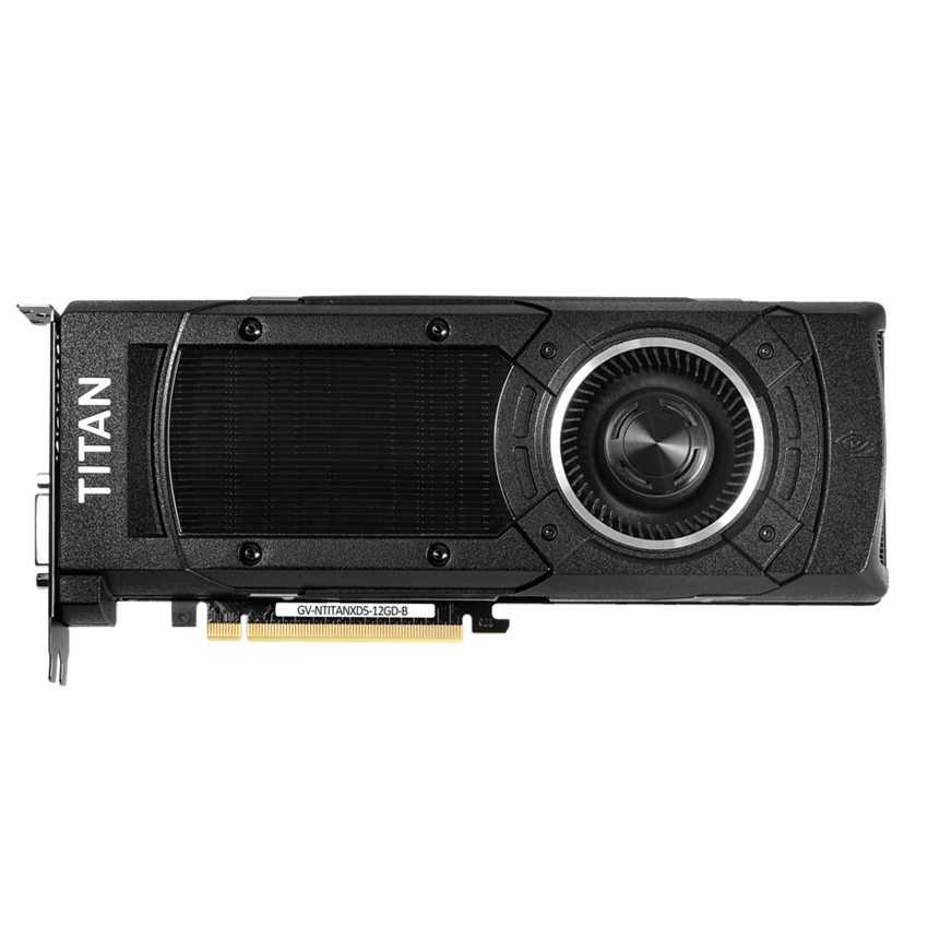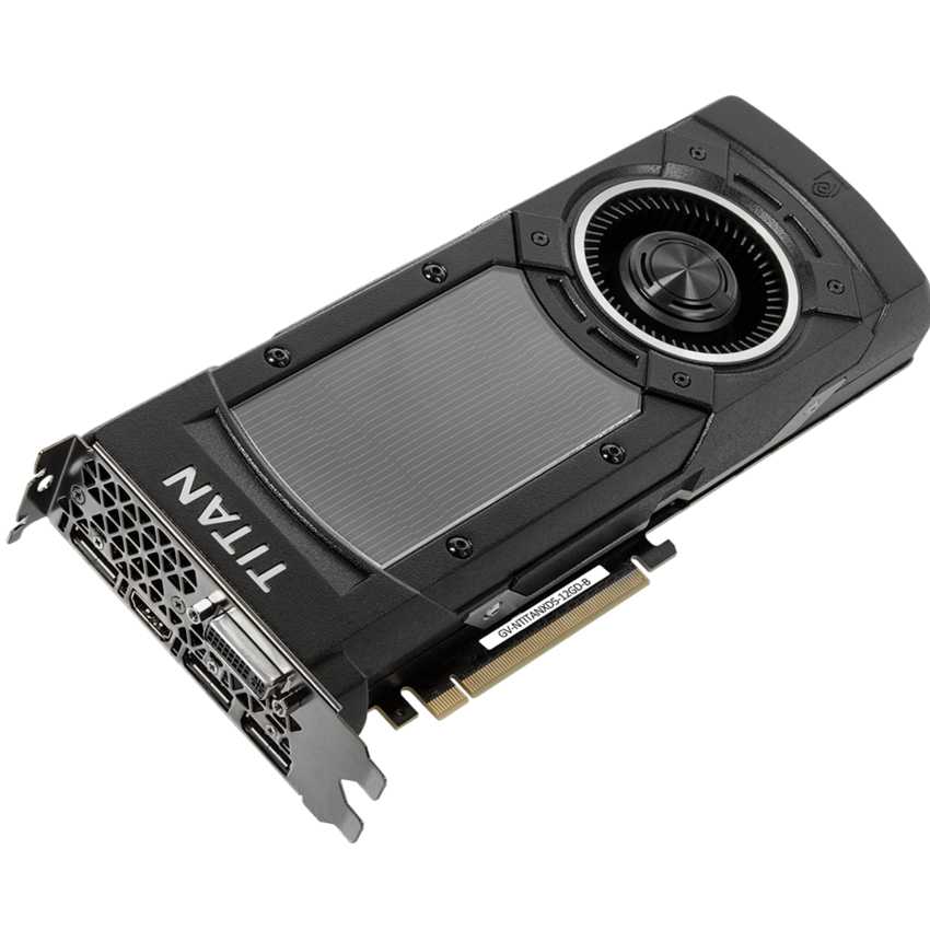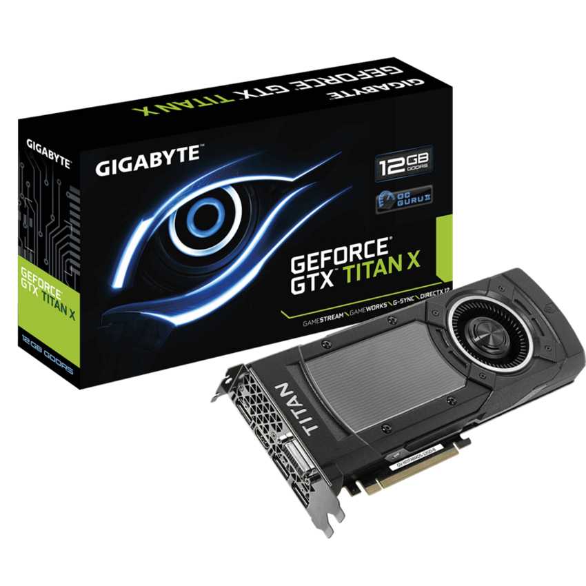 Descripción Gigabyte GV-NTITANXD5-12GD-B. Familia de procesadores de gráficos: NVIDIA, Procesador gráfico: GeForce GTX TITAN X, Máxima resolución: 4096 x 2160 Pixeles. Gráficos discretos memoria del adaptador: 12 GB, Tipo de memoria de adaptador gráfico: GDDR5-SDRAM, Ancho de datos: 384 bit. Tipo de interfaz: PCI Express 3.0. Versión DirectX: 12.0, Versión OpenGL: 4.4. Tipo de enfriamiento: Activo, Factor de forma: ATX