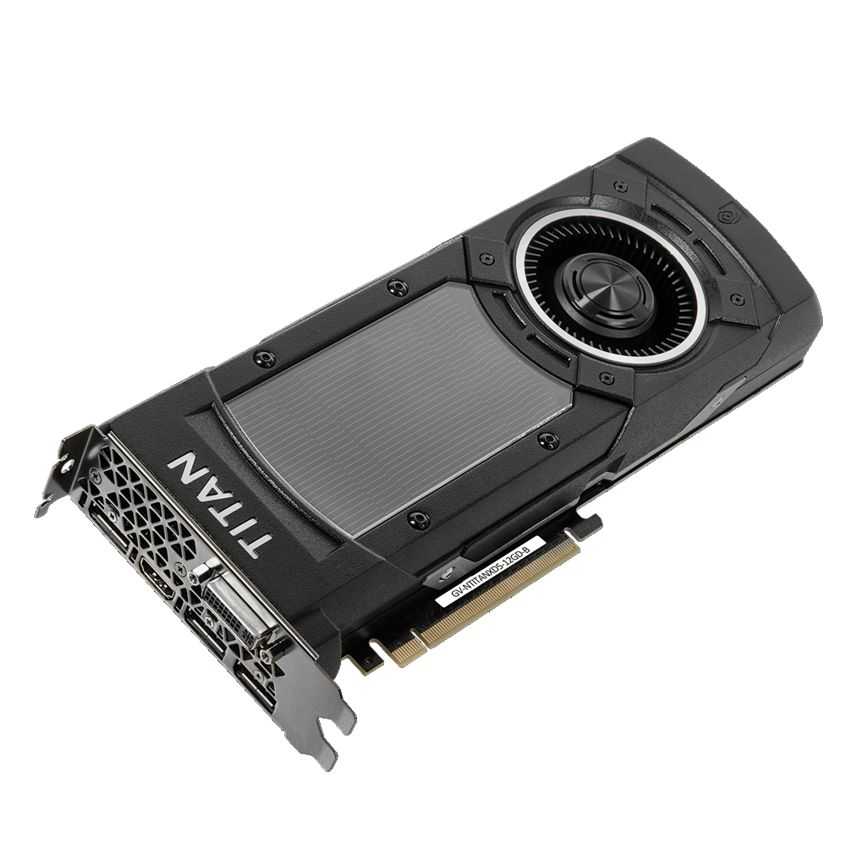 Especificaciones Chipset: GeForce GTX TITAN X Core Clock: Base/Boost clock: 1165 / 1226 MHz (standard:1000/1075) Memory Clock: 7Gbps Process Technology: 28 nm Memory Size: 12GB Memory Bus: 384 bit Memory Type: GDDR5 DirectX: 12 OpenGL: 4.5 Digital max resolution: 4096 X 2160 Analog max resolution: 2048 x 1536 Multi-view: 4 Card Bus: PCI-E 3.0 I/O: Dual-link DVI-I*1/HDMI*1/Display Port*3 Power requirement: 600W (with two 8-pin external power connector)