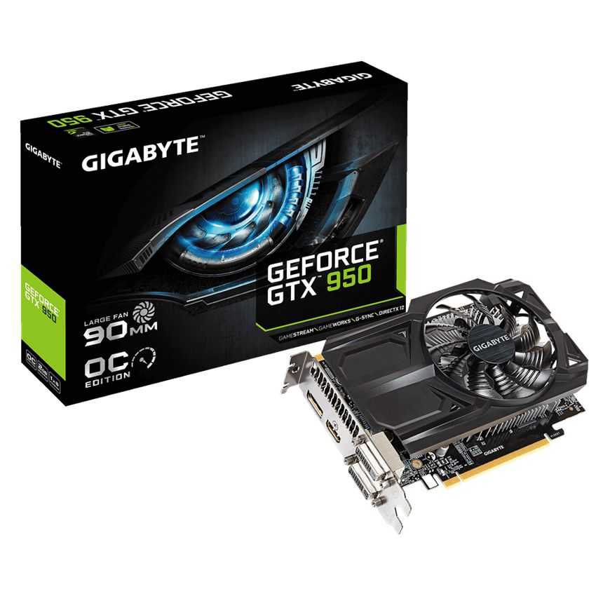 Descripción Gigabyte GF GV-N950OC-2GD. Familia de procesadores de gráficos: NVIDIA, Procesador gráfico: GeForce GTX 950, Máxima resolución: 4096 x 2160 Pixeles. Gráficos discretos memoria del adaptador: 2 GB, Tipo de memoria de adaptador gráfico: GDDR5-SDRAM, Ancho de datos: 128 Bit. Tipo de interfaz: PCI Express 3.0. Versión DirectX: 12.0, Versión OpenGL: 4.5. Tipo de enfriamiento: Activo, Factor de forma: ATX